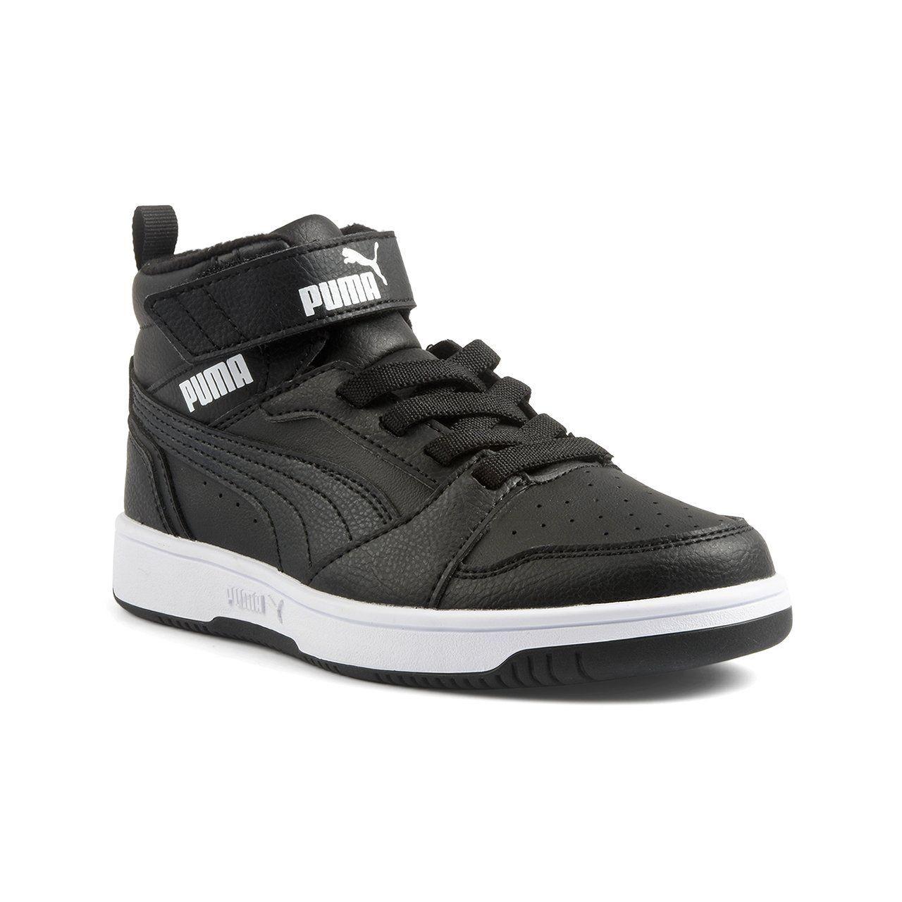 Die Puma Rebound V6 Mid Warm Boots sind für den allgemeinen und alltäglichen Gebrauch konzipiert. Dank Gummisohle und synthetischem Obermaterial bieten sie eine optimale Unterstützung. Das warme Textilfutter sorgt den ganzen Tag über für Komfort. Die textilen Einlegesohlen sind abnehmbar und leicht waschbar. Details des Designs sind ein synthetischer Sneaker und schwarze Schnürsenkel. Die Hauptfarbe ist schwarz, mit einem Hauch von Weiß auf der Innensohle und dem Puma Logo in Weiß auf der Zunge und Zunge gedruckt. Die Stiefel sind vielseitig einsetzbar und für einen schicken Look konzipiert.