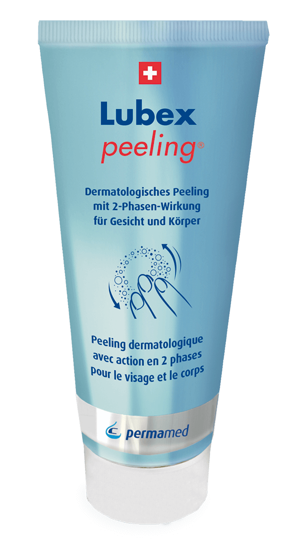 Lubex Peelingcreme (100g) kaufen  Lubex peeling® regeneriert die Haut und macht sie samtweich. Biologisch abbaubare runde Mikrogranulate entfernen abgestorbene Zellen und Hautschüppchen und machen die Haut samtweich Glykolsäure (Fruchtsäurepeeling) regeneriert die Hautstruktur tiefenwirksam und aktiviert die Hauterneuerung Für normale, fettige oder unreine Haut Peeling als Ergänzungstherapie bei Akne, vorwiegend im nicht entzündlichen Stadium Anwendung Lubex peeling® auf die gut angefeuchtete Haut auftragen, mit kreisenden Bewegungen 15 bis 30 Sekunden sanft massieren, kurz einwirken lassen und danach gründlich mit Wasser abspülen. Die Dosierung erfolgt individuell und ist abhängig von der zu behandelnden Fläche: Pro Anwendung im Gesicht ca. haselnussgrosse Menge, am Körper mindestens baumnussgrosse Menge verwenden. Lubex peeling® soll mit Wasser verdünnt und nicht in Augennähe angewendet werden.
