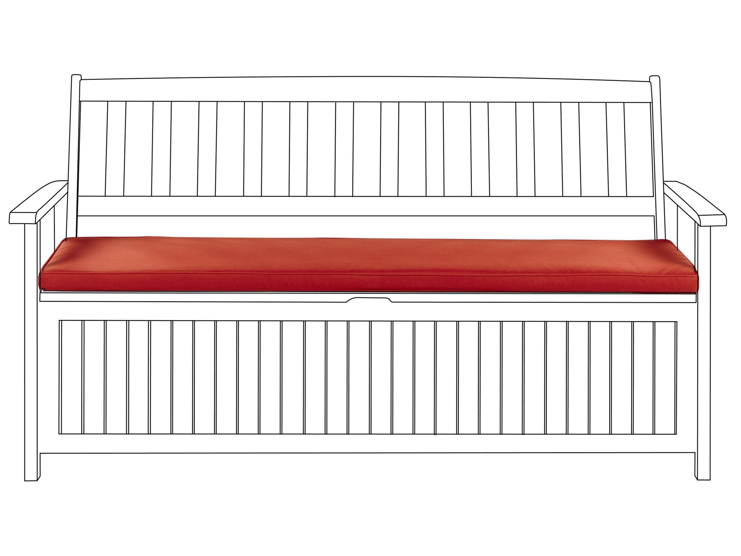 Moderne, rote Bankauflage mit Reißverschluss und Befestigungsbändern. Bestücken Sie Ihre Gartenbank mit einer passenden Polsterauflage, die den Sitzkomfort steigert und dabei noch fabelhaft in Ihrem Aussenbereich aussieht. Sie besteht aus einem strapazierfähigen Stoff und ist mit praktischen Befestigungsbändern ausgestattet; so kann die Auflage einfach auf der Sitzfläche platziert werden und wird auch bei jedem sommerlichen Windhauch nicht verrutschen. Das Sitzkissen verfügt zudem über einen waschbaren Bezug, der sich über den versteckten Reissverschluss leicht abnehmen lässt.