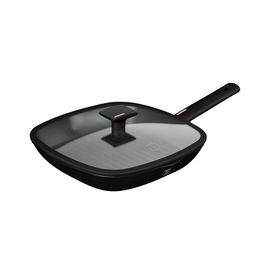 Produktinformation:, Quadratische Grillpfanne mit Deckel Ø28*4,1 cm, Umweltfreundlich, ohne PFOA, LEAD und Cadmium, Ergonomischer Soft-Touche-Griff, Material: Langlebige Antihaft-Oberfläche, Auch für die Spülmaschine geeignet, Der Deckel besteht aus gehärtetem hitzebeständigem Glas, Der Silikon-Breitrand des Deckels dichtet perfekt ab, Der Rand des Deckels mit einer seitlichen Öffnung für das Entweichen von Dampf, Volumen 2.1 Liter, Schlichtes Design, Für alle Herdarten geeignet, inklusive Induktion, TURBO-Induktionsboden schnelleres Garen und Energieeinsparung von bis zu 35 ^, , Anwendungsbereich:, Grillgemüse, Allerart von Fleisch & Würsten, Rösti oder Kartoffelpuffer uvm.