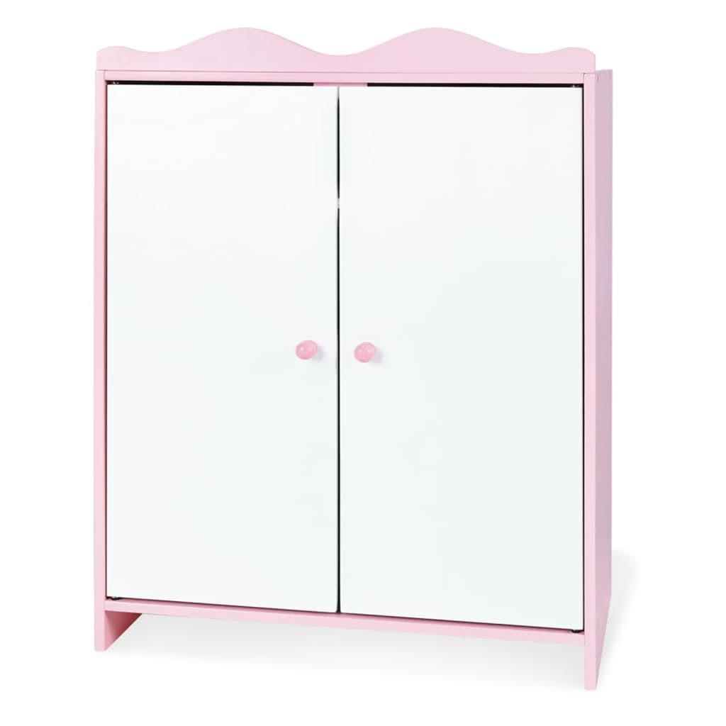 Dieser Spielzeugschrank besteht aus rosa und weiß lackiertem MDF-Material und verfügt über zwei Türen. Dank des mitgelieferten Einlegebodens und der Kleiderstange können Ihre Kinder die Accessoires ihrer Lieblingspuppen und Teddybären ordentlich verstauen.