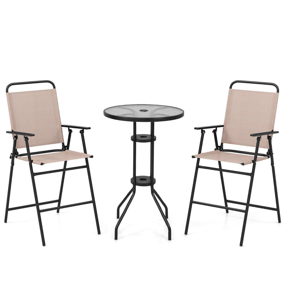 Northix, 3 tlg. Outdoor-Bistro-Set Terrassen-Bartisch mit 2 Klappbaren Stühlen & Sonnenschirmloch Beige
