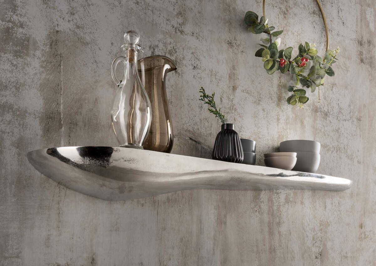 Wandregal in Aluminium natur vernickelt.