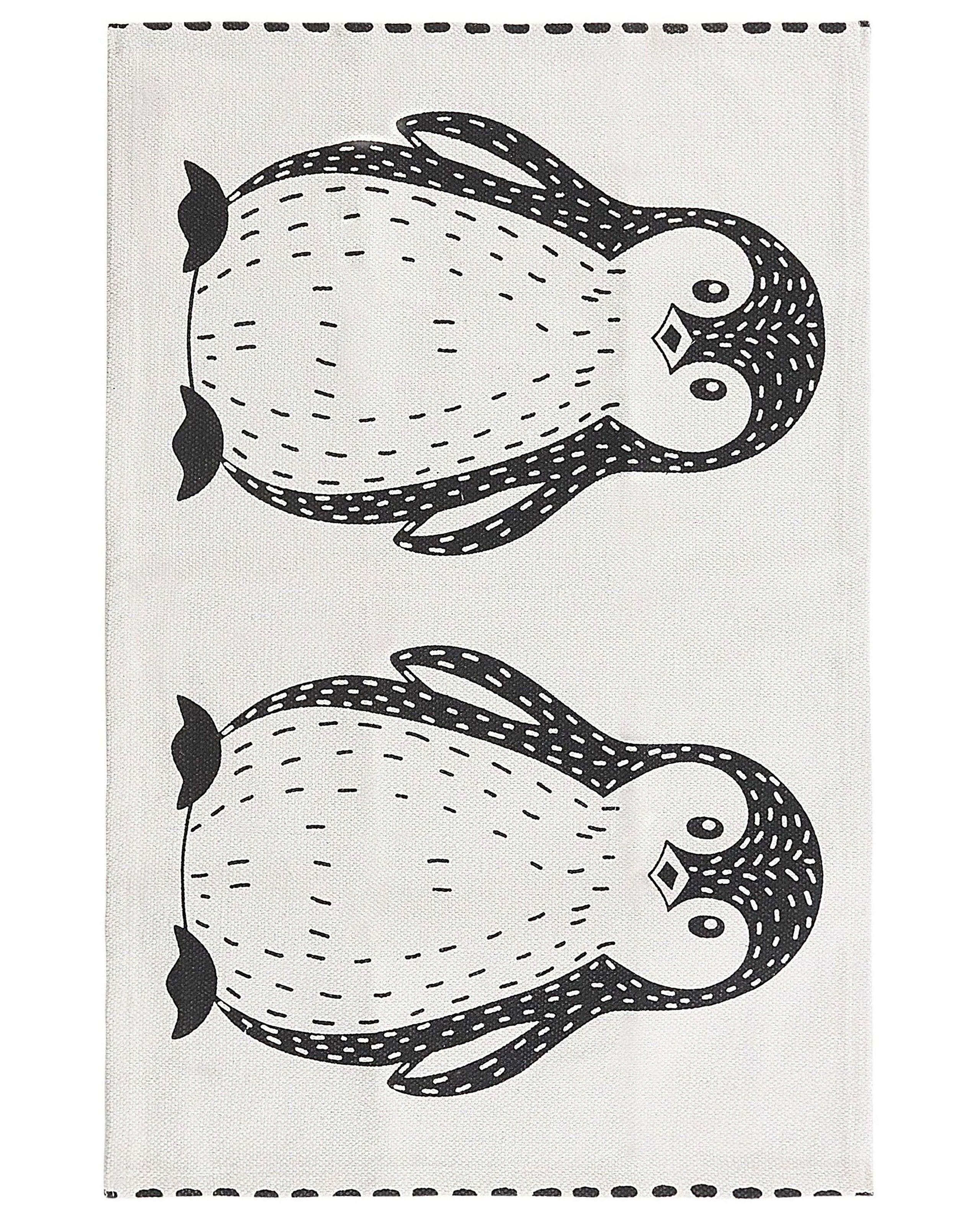 Kindergerechter Teppich mit niedlichem Pinguin-Muster. Dieser bezaubernde Baumwollteppich mit einem lustigen Pinguinmotiv ist ein ideales Ausstattungselement jedes Kinderzimmers und lässt die Kinderaugen strahlen. Die schwarz-weisse Farbkombination, sowie das schlichte und einfache Design passen sowohl zu modernen Kinderzimmern als auch zu verspielten Partyräumen und Schlafzimmern.
