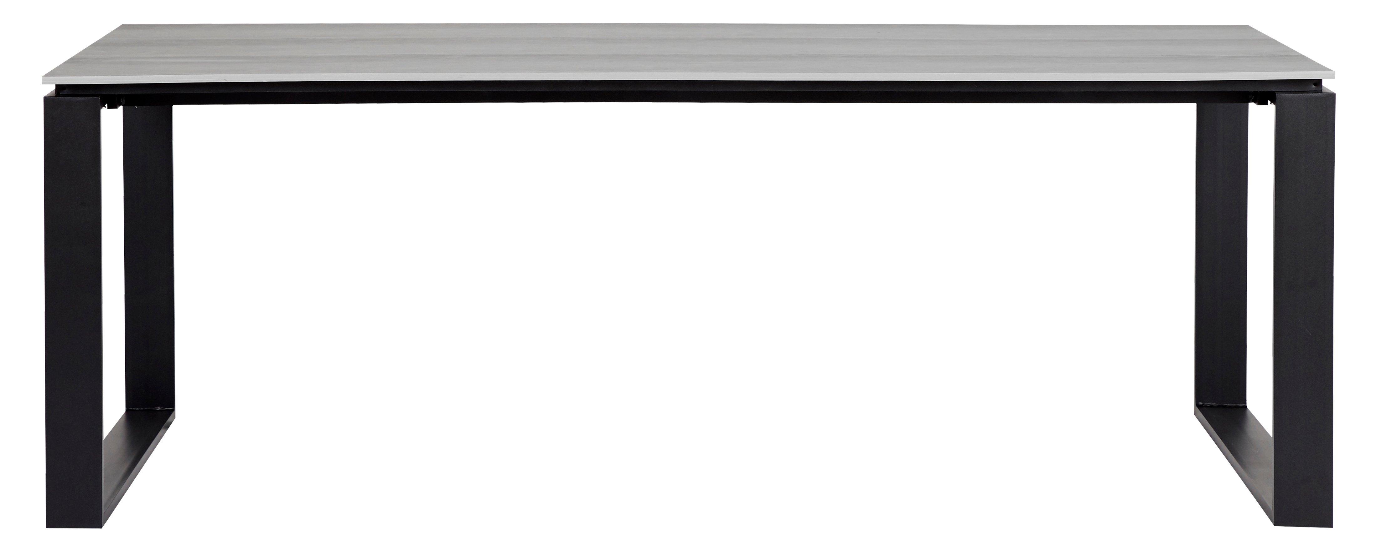 Die elegante Farb- und Materialkombination aus pulverbeschichtetem Aluminium in Schwarz und dem Kunstholz in Ash Grey Farbton verleiht diesem Tisch eine moderne und gemütliche Ausstrahlung. Die dünne Tischplatte wird von 2 in Tischgestelle aus pulverbeschichtetem Stahl getragen, welche dem Möbelstück eine elegante und leicht wirkende Optik geben. Der Tisch macht sowohl im Innen- wie auch Aussenbereich eine gute Figur und hat dabei Platz für bis zu 8 Personen.