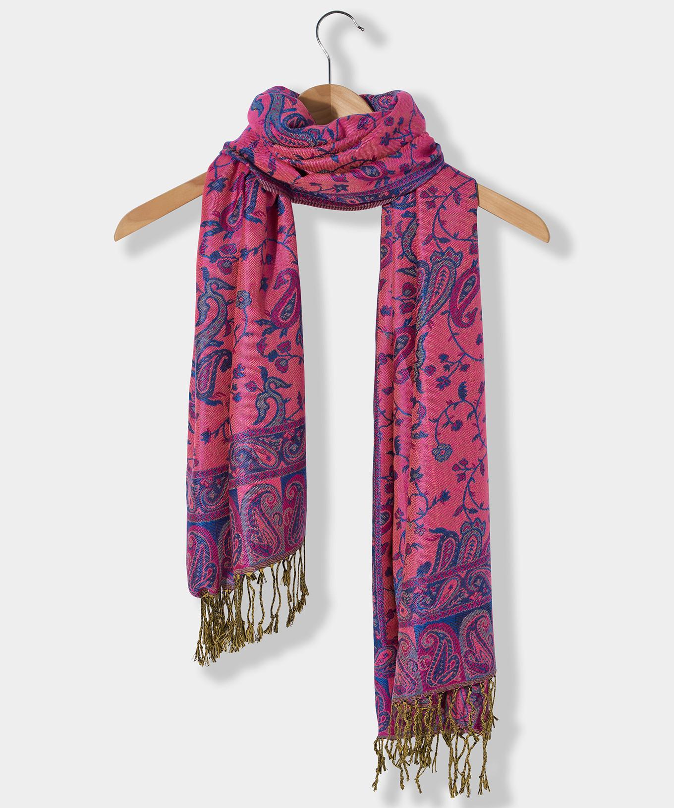 Dieser schimmernde Schal mit Paisleymuster verbindet Retro-Charakter mit einer zeitgemäßen Note.