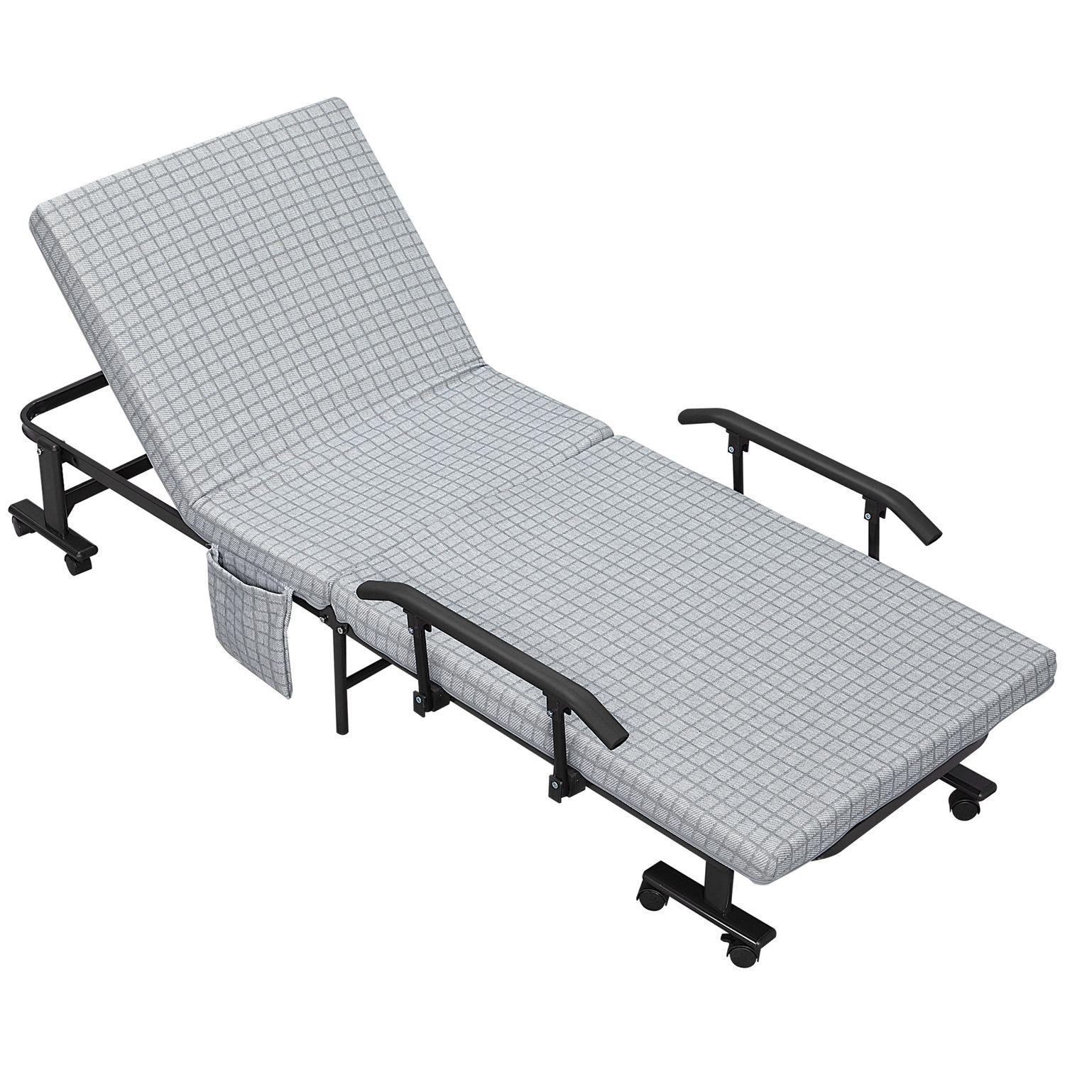 Northio, Klappbett Gästebett mit Rollen, Sessel, 5-stufig verstellbare Rückenlehne, Reisebett, Stahlrahmen, Hellgrau+Schwarz, 190x76x33cm