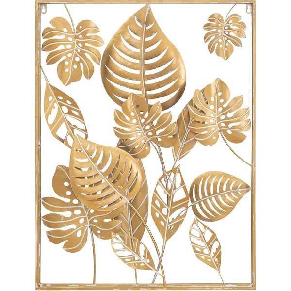 3D-Wanddeko aus goldenem Metall, bestehend aus einer Reihe von Blättern in einer rechteckigen Struktur. Der Goldglanz verleiht jedem Raum einen Hauch von Eleganz.
