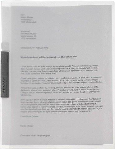 TENDER - Bewerbungsmappen Die Bewerbungsmappe aus langlebigem KolmaFlex Material garantiert einen ansprechenden und bleibenden Eindruck. In der integrierten silbernen Klemme können bis zu 30 Blatt (80 g/m2) sicher aufbewahrt werden. Der Bewerbungsbrief wird, dank den ausgestanzten Schlitzen, schön präsentiert. Bei zusätzlichem Platzbedarf ist auf der rechten Innenseite eine aufgeschweisste Tasche. Profitieren Sie zusätzlich von den Bewerbungstipps auf dem Einleger sowie von der kostenlosen Benutzung von unserem JobCreato Für einen ansprechenden und bleibenden Eindruck Professionelle Präsentation des Bewerbungsbriefes 3 teilige Mappe mit Klemmclip