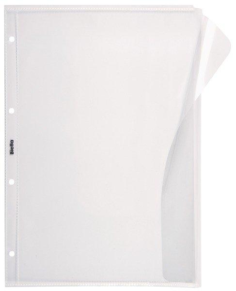 Dokumenten-Taschen A4 Mit der Biella Dokumentenhülle sind Ihre Unterlagen jederzeit geschützt. Dank der seitlichen Klappe können auch Dokumente grösseren Volumens geordnet werden. Hochtransparent Glatt Polypropylen Lochrand mit weissem Verstärkungsstreifen Tasche seitlich geöffnet Mit Klappe