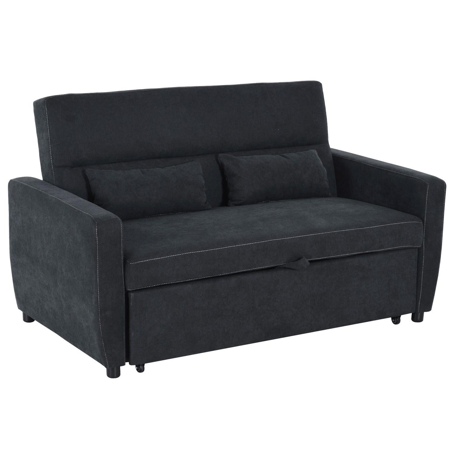 Northio Schlafsofa, Klappsofa, 2-Sitzer Stoffsofa, Bettsofa, Sofa Mit Schlaffunktion, Sofagarnitur, Verstellbarer Winkel, Schwarz, 148 X 82 X 89 Cm