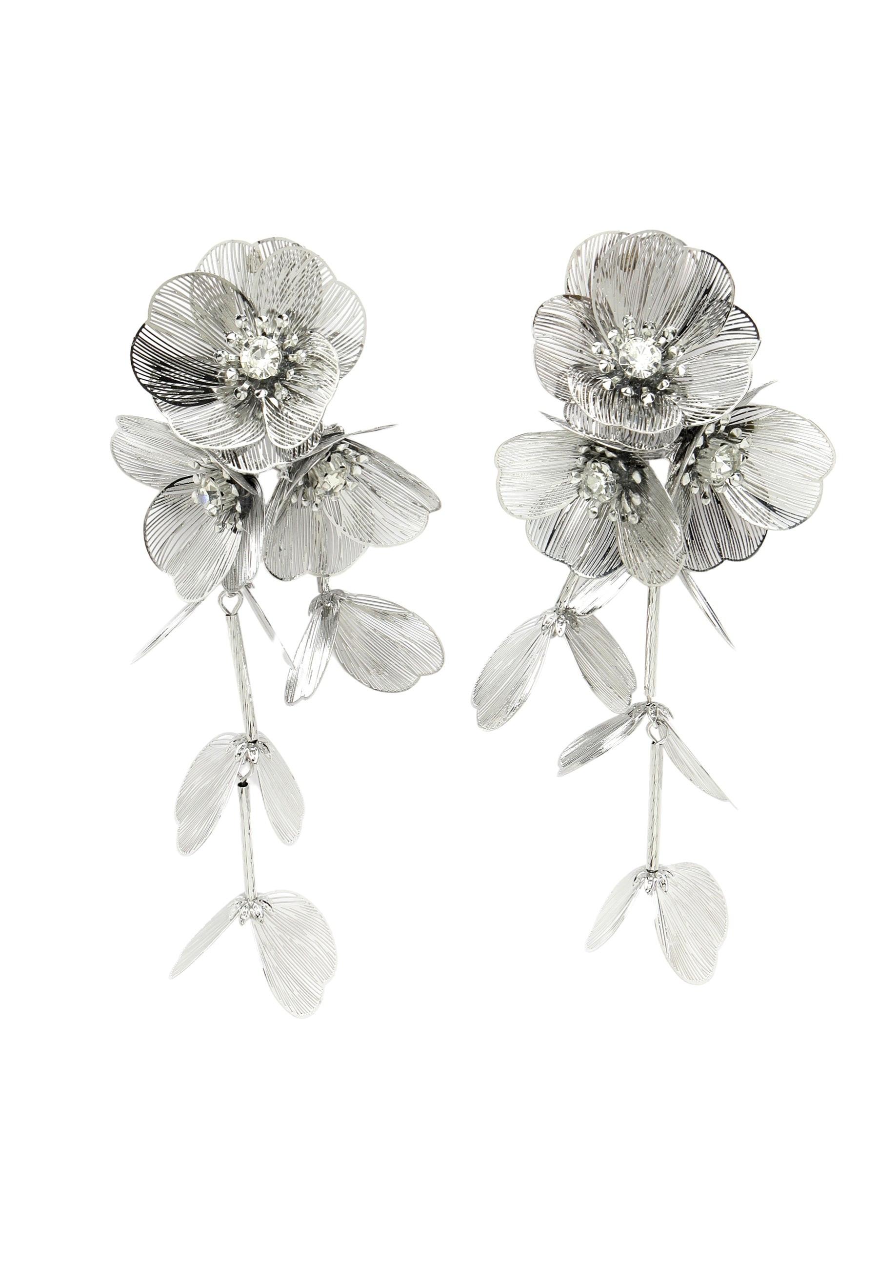 Die Crystal Bloom Quastenohrringe in Silber sind ein atemberaubendes und elegantes Accessoire, das jedem Outfit einen Hauch von Raffinesse verleiht. Diese Ohrringe sind aus hochwertigen Materialien gefertigt und bestechen durch einen wunderschönen, blütenförmigen Ohrstecker, der mit funkelnden Kristallen und baumelnden Blütenblättern verziert ist. Die Crystal Bloom Quastenohrringe in Silber sind vielseitig kombinierbar und passen zu verschiedenen Outfits. Größe: 12,40 cm x 5,20 cm | Beschichtung: Rhodiumplattiert | Verschluss: Stecker und Rückseite