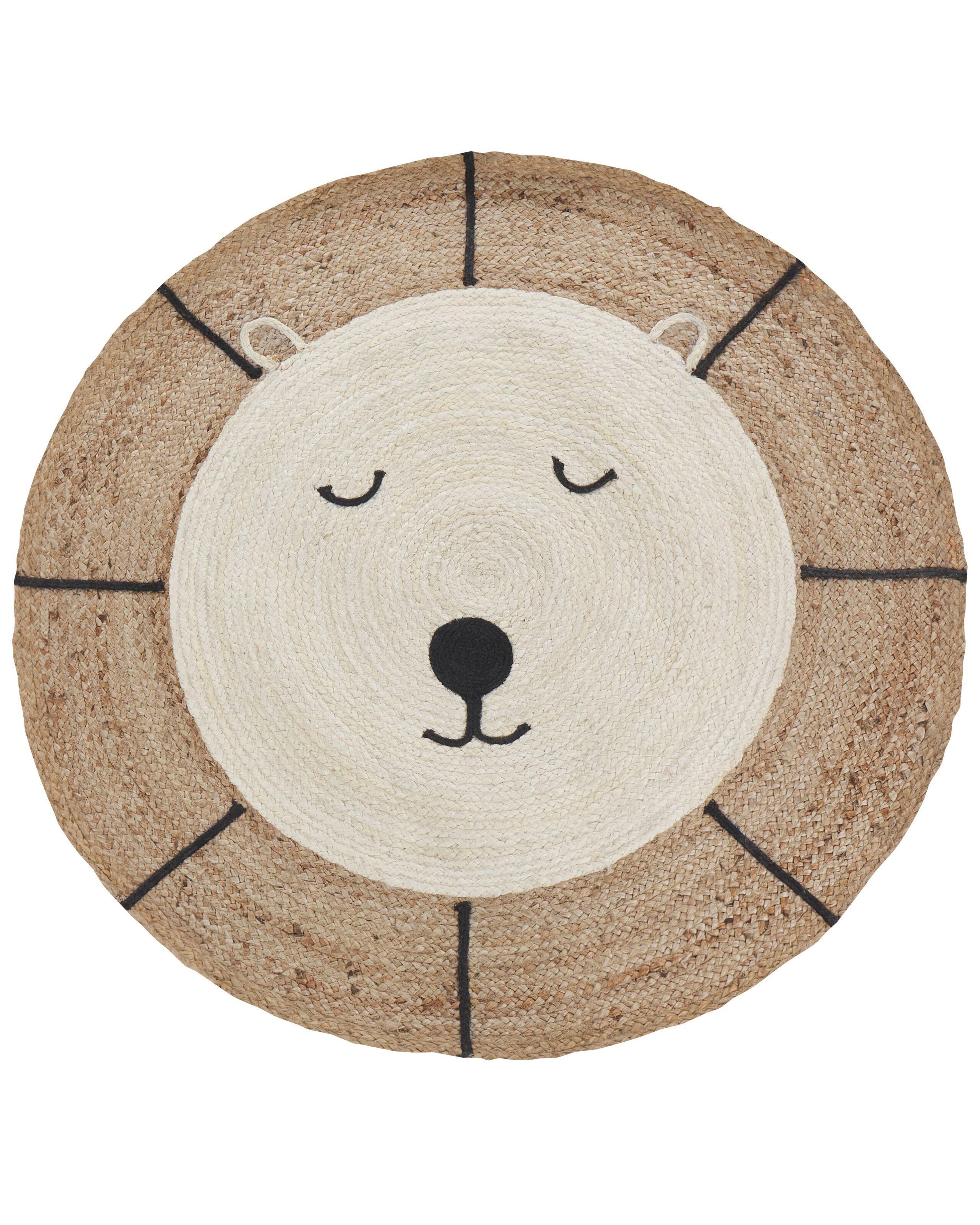 Runder Teppich mit Bärenmotiv für das Kinderzimmer. Dieser runde Teppich mit einem niedlichen Bären auf der Vorderseite wurde speziell für Kinder entworfen. Handgefertigt aus Jute, ist er sehr strapazierfähig und eignet sich perfekt für das Kinderzimmer. Mit seinen biologisch abbaubaren Fasern und natürlichen Farbtönen lässt er sich leicht in ein modernes Wohnambiente einfügen.