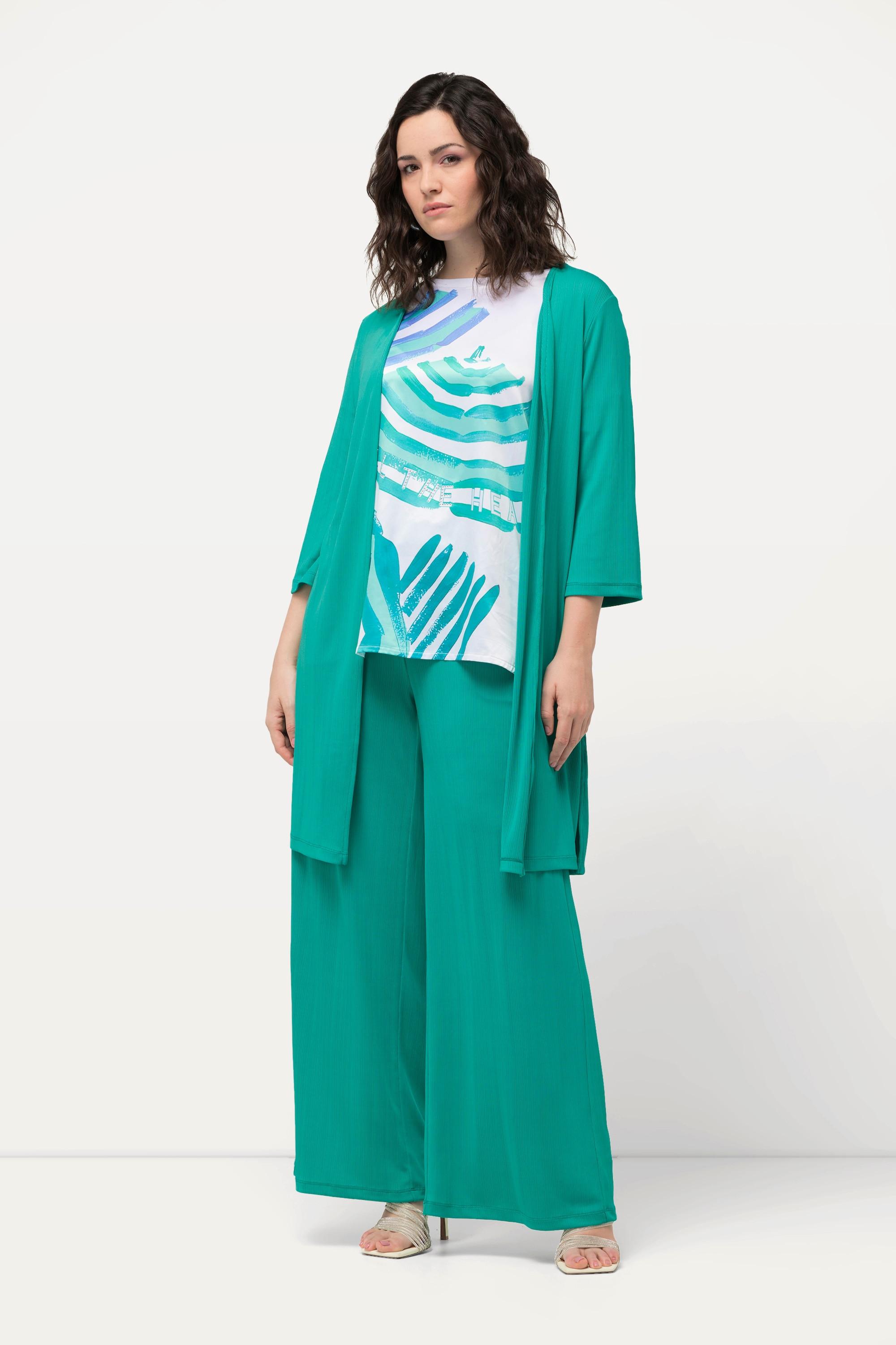 Ulla Popken Longjacke Rippjersey offene Form V-Ausschnitt