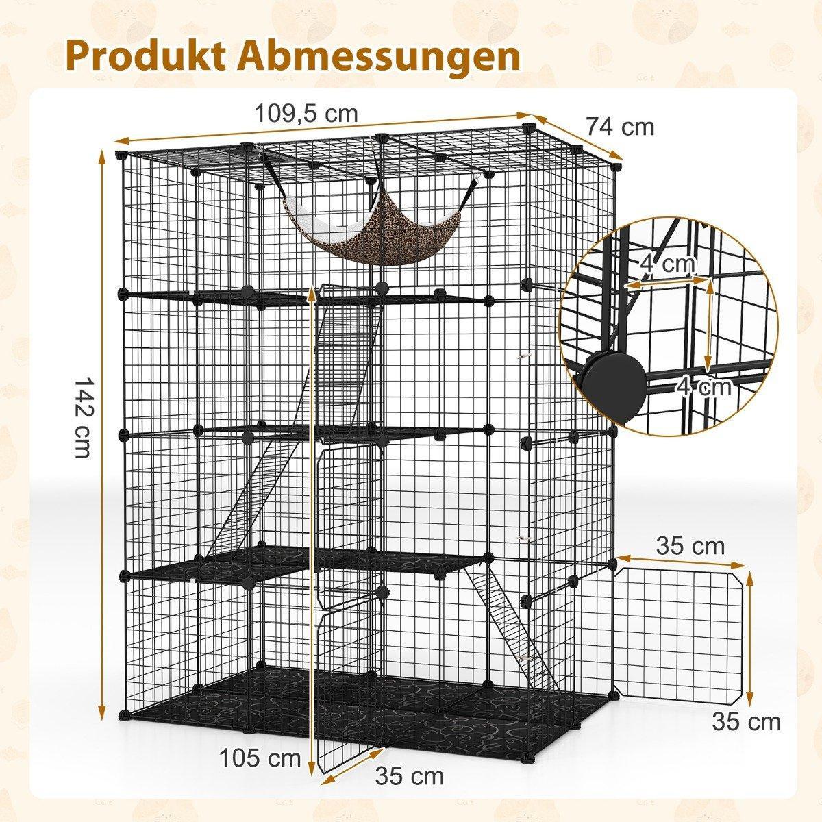 Northix Katzenkäfig 4-stöckig große Katzengehege mit Hängematte 3 Leitern 4 Türen & Dachfenster