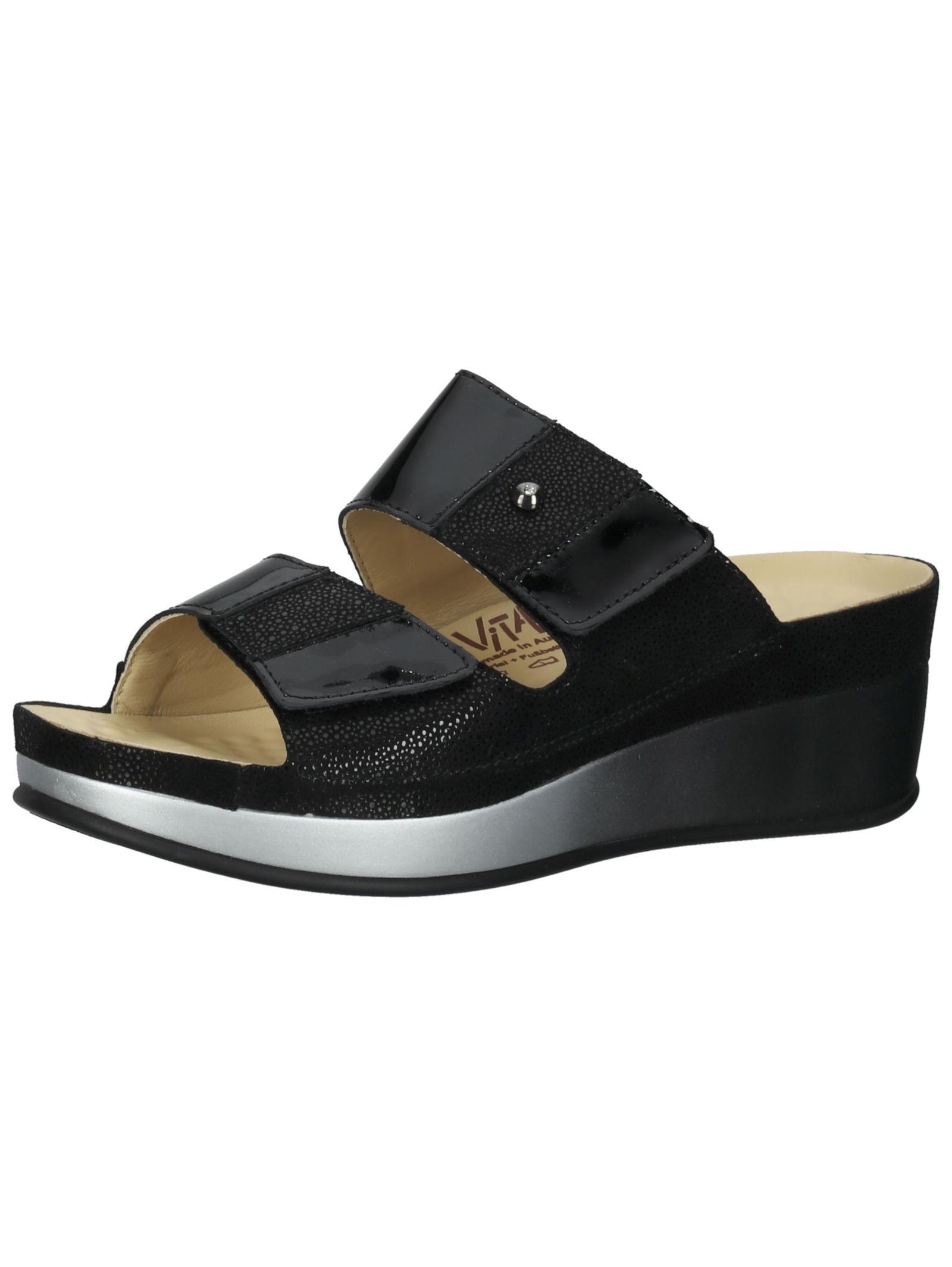 Diese bequemen Plateau-Pantoletten von Vital verfügen über ein Obermaterial aus hochwertigem Leder. Das Innenmaterial sowie die Decksohle bestehen ebenfalls aus Leder, das sich an den Fuss anschmiegt und ihn atmen lässt. Dank des Klettverschlusses lässt sich der Schuh flexibel anpassen. Die Lackleder-Optik rundet das Gesamtbild ab.