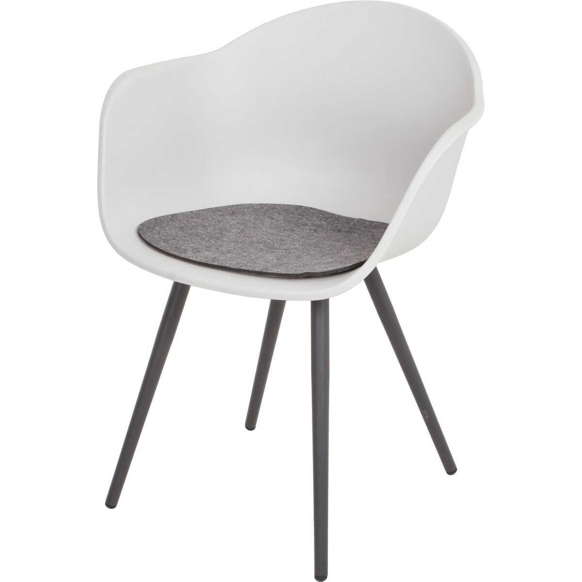 Hergestellt aus hochwertigem Aluminium und Kunststoff pp Stilvolles und modernes Design Pflegeleicht und langlebig Bequeme Sitzfläche mit passender Auflage Ideal für verschiedene Umgebungen: Esszimmer, Terrasse, Garten Maximale Belastbarkeit: 110 kg