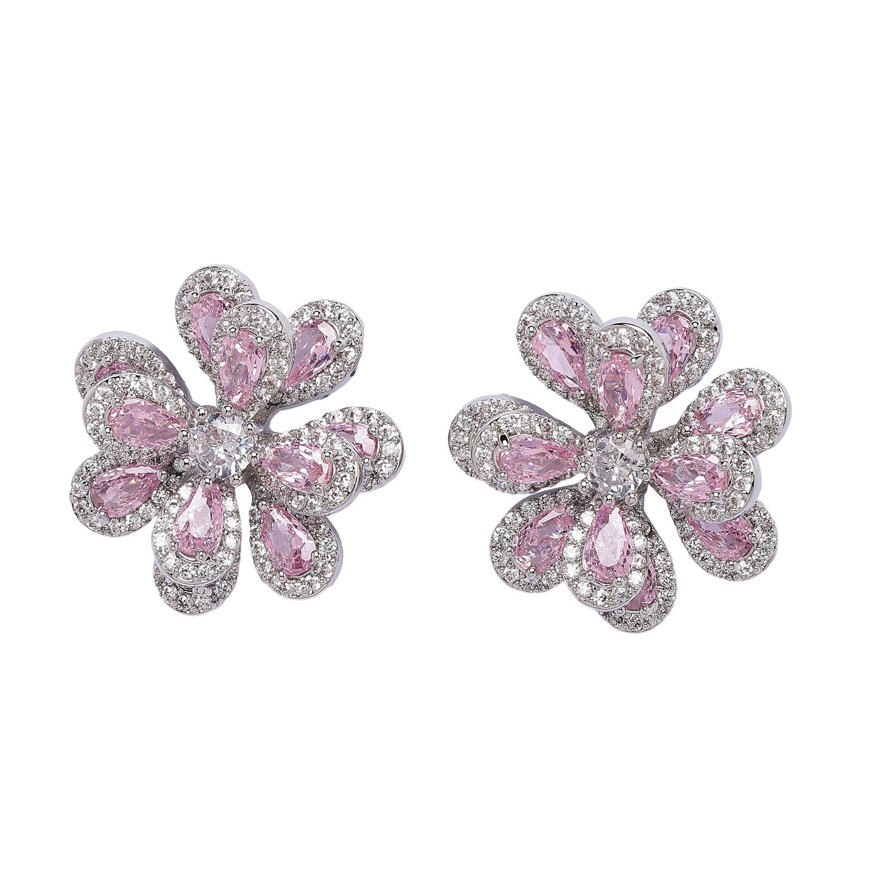 AVANT-GARDE PARIS Hellrosa Funkelnde Florale Steckerohrringe
