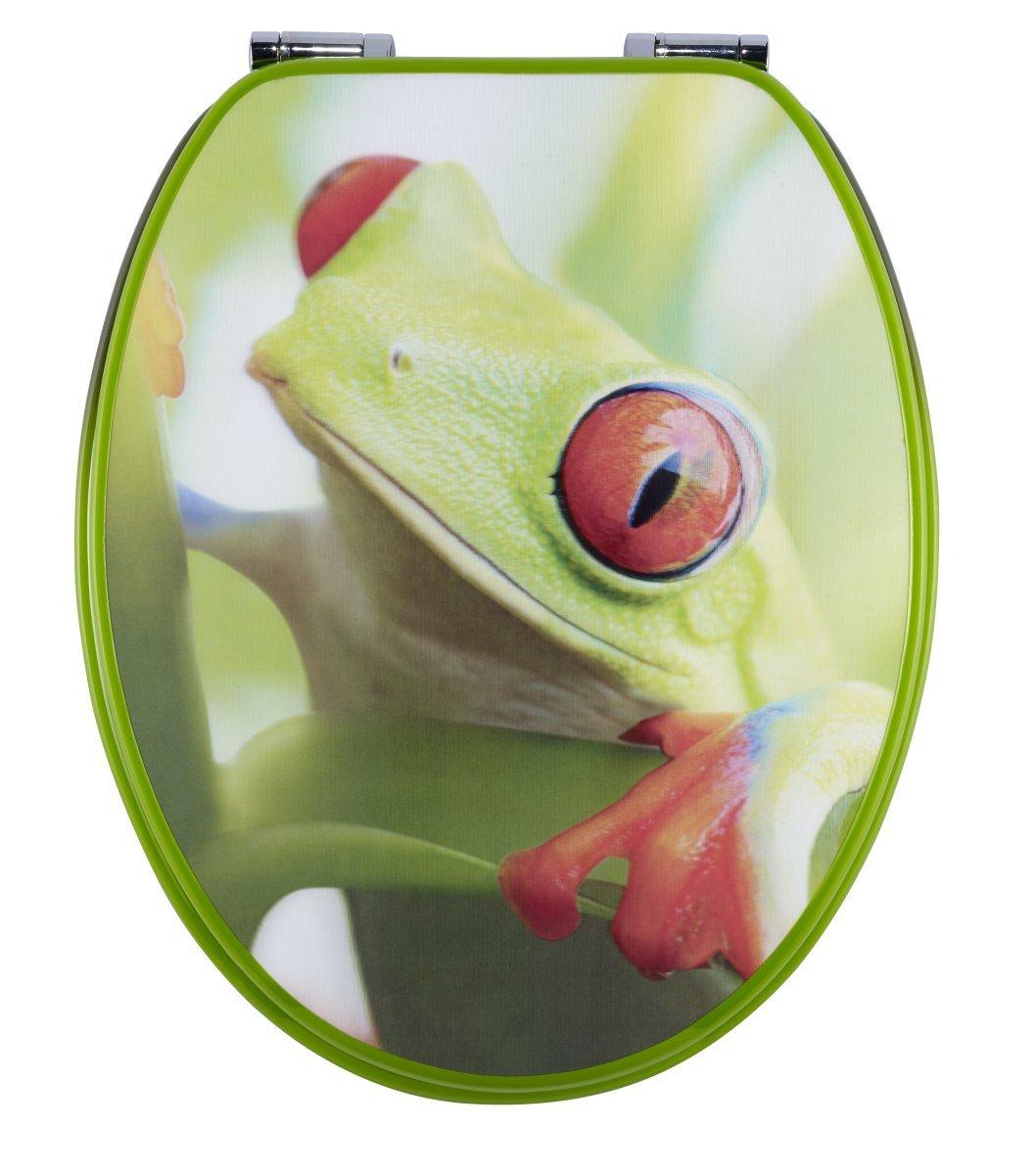 diaqua® WC-Sitz Paris 3D Slow Down Frog - MDF - FSC® 100% 42 - 47 X 37.2 CM - WC-Sitz mit Absenkautomatik für sanftes Schliessen von Deckel und Brille (Slow Down). Rasche Montage durch verstellbare und einfache Befestigung, aus pflegeleichtem und langlebigem MDF, universelle Passform für alle handelsüblichen WC-Anlagen, inkl. Befestigungsmaterial.