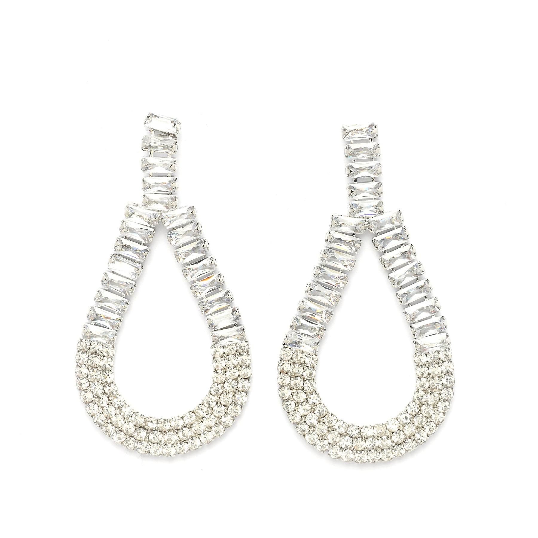 Funkelnde Tropfenohrringe mit doppellagigem Design, besetzt mit glitzernden Zirkonia-Steinen für einen glamourösen, aufsehenerregenden Look. Größe: 2,3 cm x 4,3 cm | Beschichtung: Rhodiumplattiert | Verschluss: Stecker und Rückseite