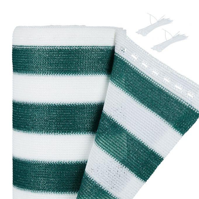 Der gestreifte Balkonschutz bietet dank strapazierfähigem HDPE-Gewebe robusten Sichtschutz und Windschutz. Ideal für Balkone und Zäune, ermöglicht er dank UV- und Witterungsbeständigkeit den ganzjährigen Einsatz im Außenbereich.