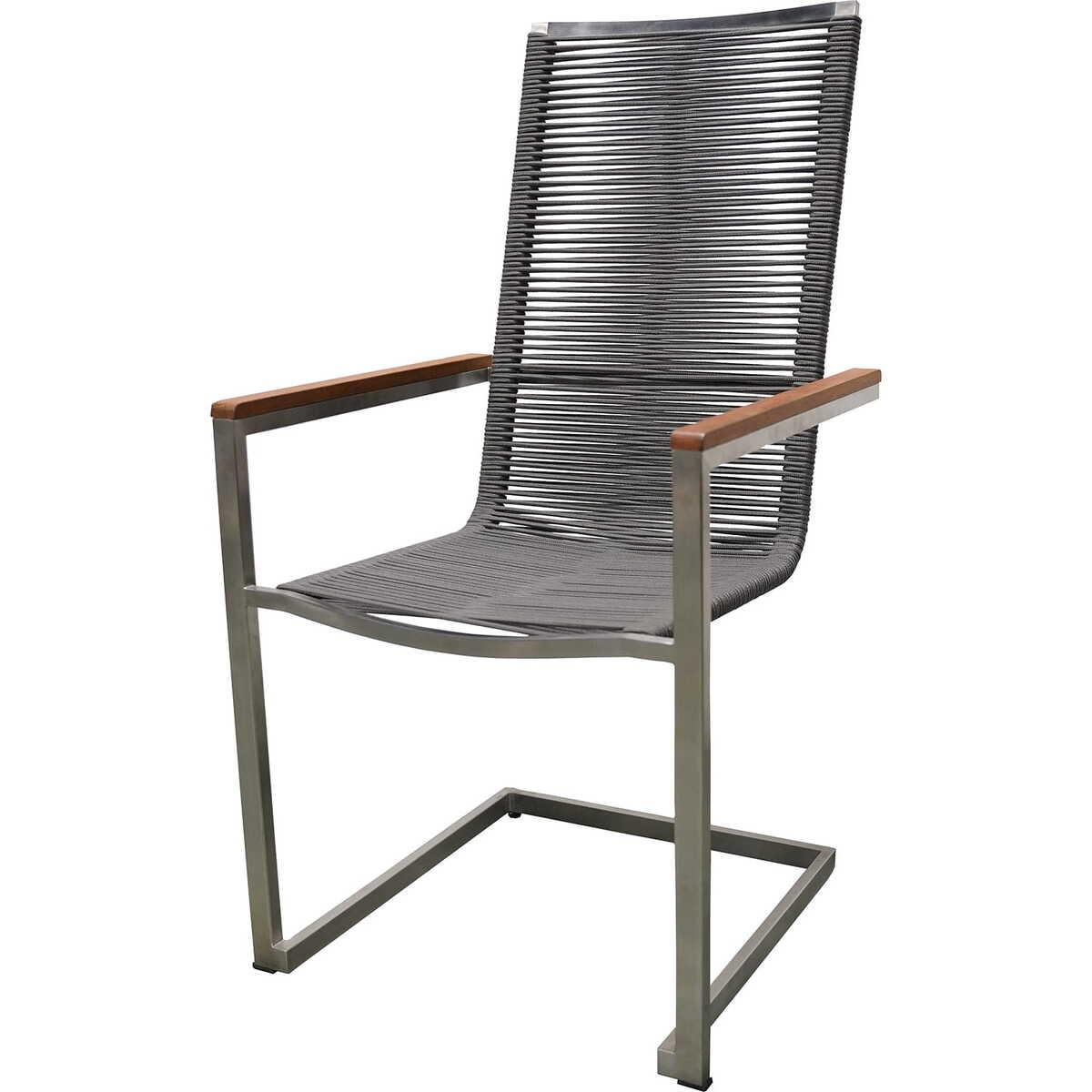 Der Freischwinger Pavia, ein Meisterstück der modernen Möbeldesign, bietet eine Kombination aus Stabilität und Eleganz. Aus strapazierfähigem Stahl mit Anthrazit-Oberfläche gefertigt, bietet er Komfort durch die Rückenlehne und Sitzfläche aus robusten Olefin-Seilen. Mit einem Hauch von Natürlichkeit durch das Teakholzdetail, ist dieser Stuhl eine Bereicherung für jeden Innenbereich.