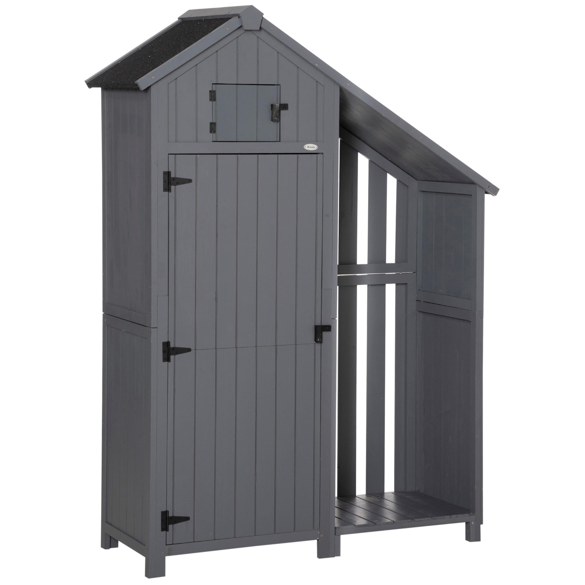 Organisieren Sie Ihren Garten mit dem geräumigen Outsunny Gerätehaus. Diese Gartenhütte bietet ein offenes Seitenfach und ein schräges Dach für optimalen Regenablauf. Gefertigt aus robustem, behandeltem Massivholz, schützt dieses Gartenhaus Ihre Gartengeräte, Brennholz und weitere Utensilien zuverlässig vor Feuchtigkeit und Witterung.