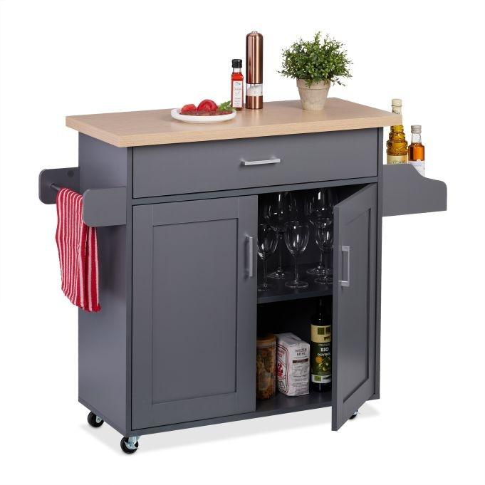 Der Servierwagen mit Arbeitsplatte verwandelt Ihre Küche in einen funktionalen Arbeitsplatz und bietet viel Stauraum und Komfort. Bereiten Sie Ihre Mahlzeiten mühelos auf der robusten Arbeitsplatte zu.
