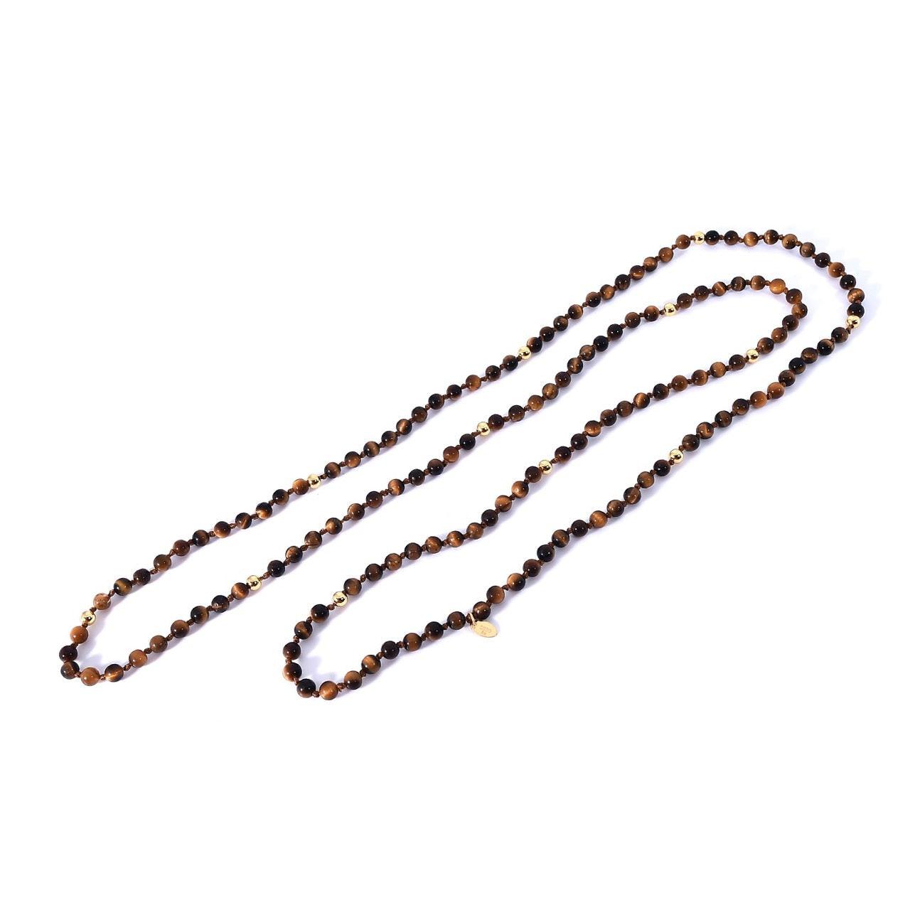 Diese bezaubernde Damen-Halskette ist handgeknüpft mit 4mm Tigeraugen und goldenen Perlen und besticht durch ihre vielseitige Eleganz. Sie lässt sich nicht nur als traumhafte Halskette tragen, sondern kann auch als Wickelarmband um das Handgelenk gewickelt werden ein wahres Multitalent!