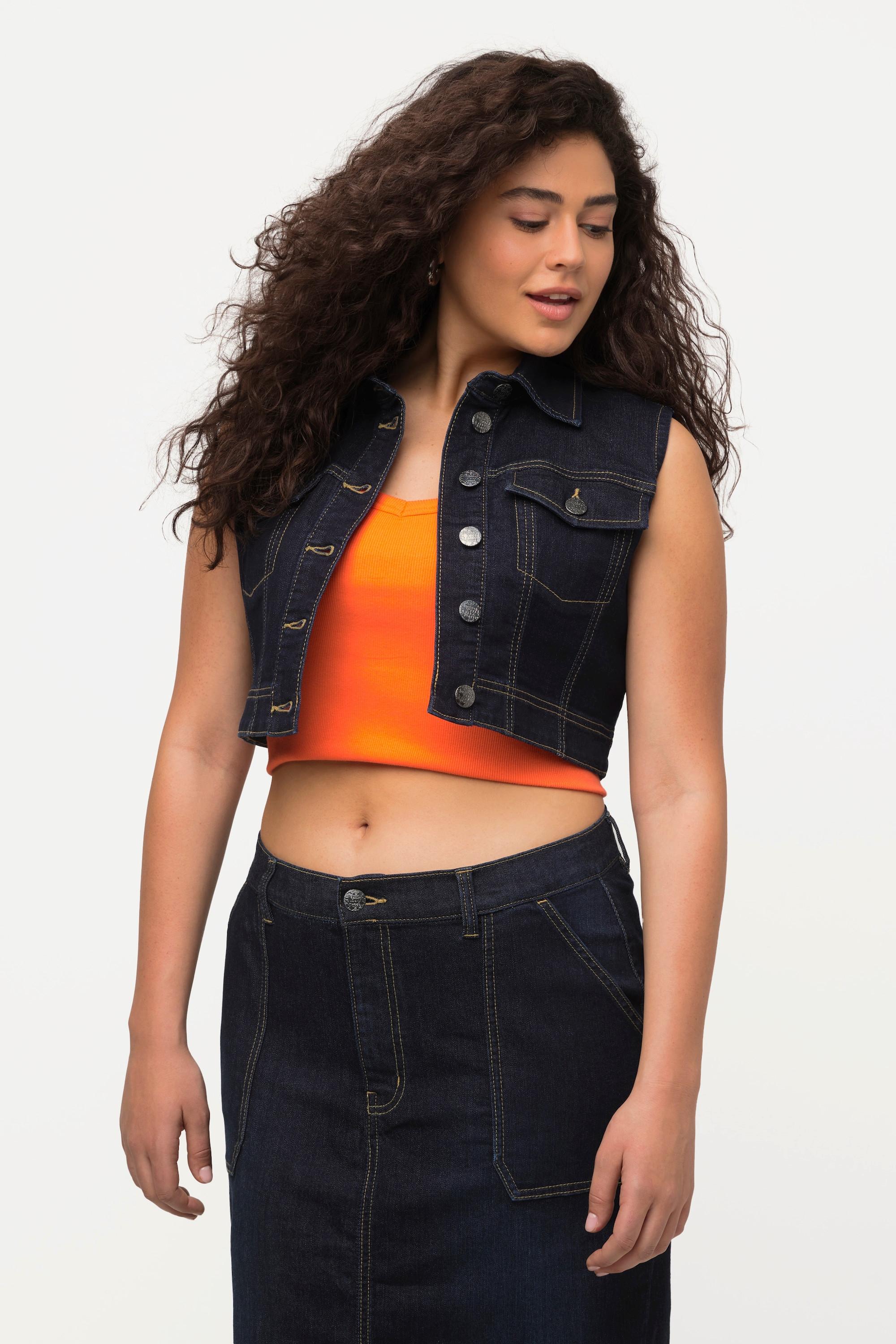 Ulla Popken Kurze Slim ärmellose Jeansweste mit Hemdkragen
