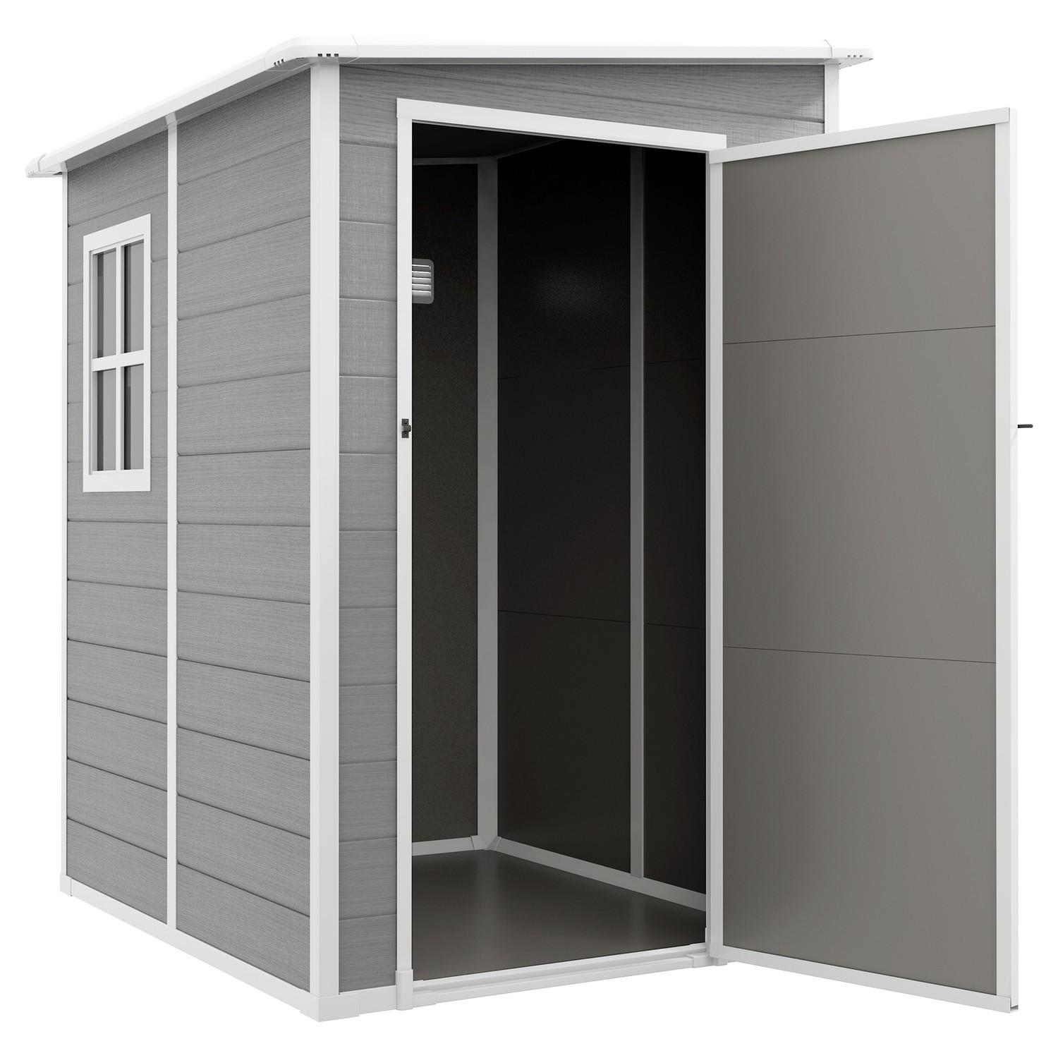Northio Gerätehaus 1,54m³, Gartenhaus mit Pultdach, 122 x 149 x 192/177 cm, Geräteschuppen mit Abschließbar Tür, Fenster, Fahrradgarage, Gartenschrank aus Aluminium, für Hinterhof, Garten, Grau