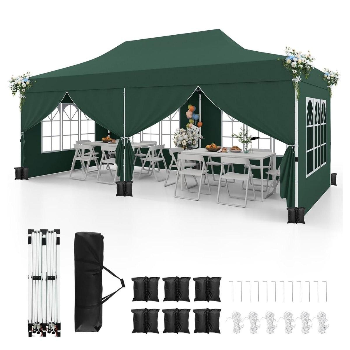 Das Pop-up-Pavillon bietet einen großzügigen Schattenbereich von 3 x 6 m und eignet sich perfekt für Outdoor-Events wie Picknicks, Partys und Hochzeiten. Das reißfeste Oxford-Gewebe sorgt für optimalen Schutz.