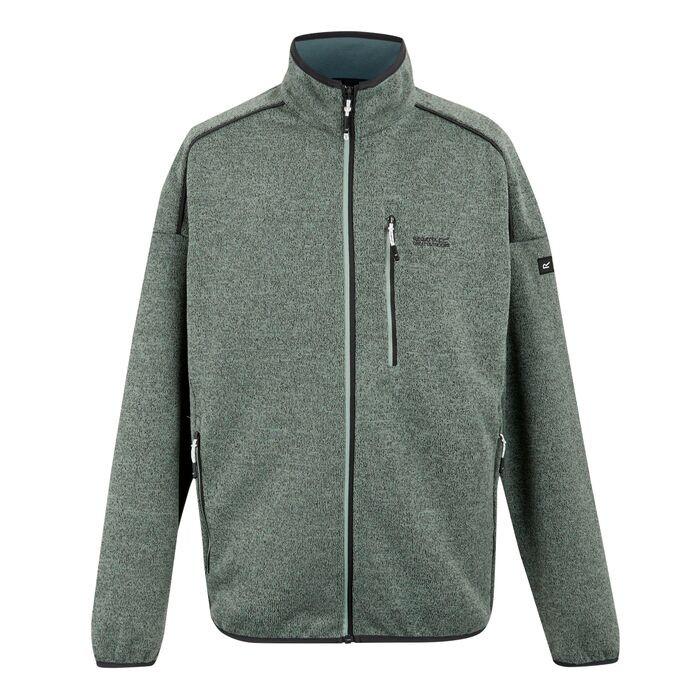 Die Sportjacke M's Kames der Marke Regatta ist für Outdoor-Aktivitäten und Freizeit konzipiert. Diese Jacke besteht zu 100% aus recyceltem Polyester und ist somit eine umweltfreundliche Wahl. Es ist Fleece, was bedeutet, es ist isolierend und warm, und bietet ausgezeichnete Atmungsaktivität, um Schweiß zu verhindern. Die Jacke ist leicht und bequem, so dass sie eine ausgezeichnete Wahl für Training und sportliche Aktivitäten. Es hat drei Taschen, zwei auf der Brust und eine auf dem linken Arm, alle durch Reißverschlüsse geschlossen. Die Jacke ist grün und bietet Sonnenschutz für Outdoor-Aktivitäten. Die Jacke ist auch mit einem durchgehenden Reißverschluss für große Flexibilität ausgestattet. Der Kragen ist hoch, um zusätzlichen Schutz gegen die Kälte zu bieten. Auf der linken Brust ist ein Regatta-Markenlogo zu sehen, auf dem linken Arm befindet sich ein weiteres Label mit einem "R" in einem Quadrat.