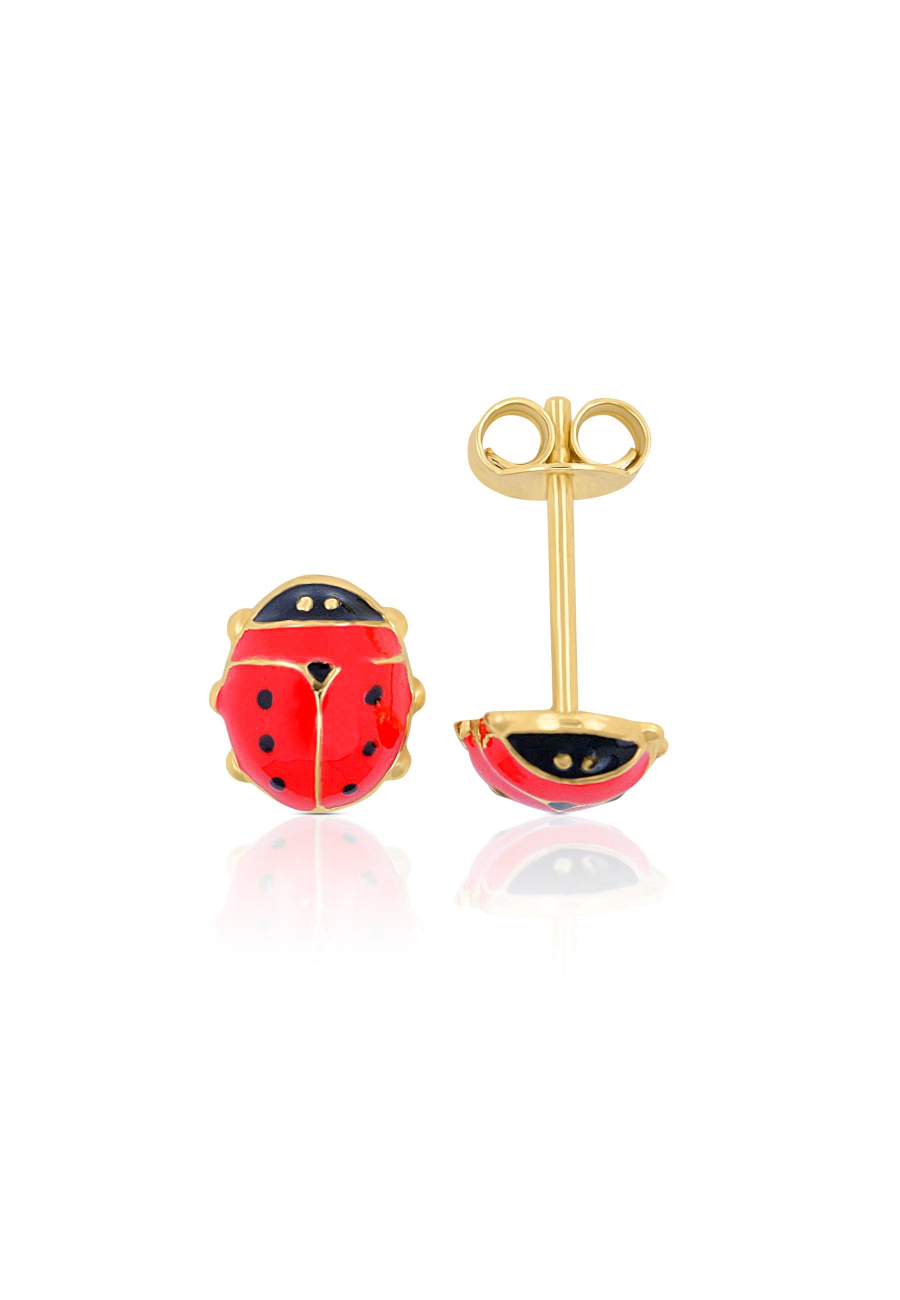 MUAU Schmuck Ohrstecker Marienkäfer Gelbgold 750/schwarz 8mm