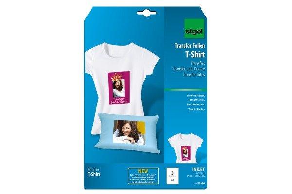 Sigel, SIGEL Inkjet-Transfer T-Shirt A4 IP650 helle Textilien 3 Blatt
