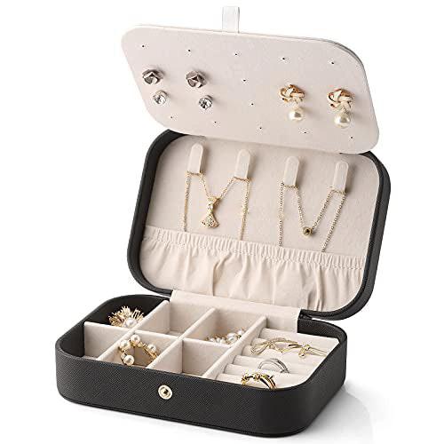 Individuelle Funktion: Schmuckkästchen für Ringe, Ketten, Ohrringe, Ohrstecker, Manschettenknöpfe und Armbänder usw. Vollständig herausnehmbare Trennwand zur individuellen Gestaltung. Auch Uhren und Lippenstift können darin aufbewahrt werden. Tragbare Größe: 16 x 11 x 5 cm - Bequem für Reisen/Urlaub/Wandern. Mit ihren geringen Abmessungen passt sie gut in Ihre Handtasche oder Ihren Koffer. Geeignet für Sommerferien, Ausflüge, Übernachtungen und Geschäftsreisen Premium-Qualität: Aus hochwertigem PU-Leder gefertigt, sieht das Schmuckkästchen sehr schön aus. Hergestellt aus umweltfreundlichen und guten Materialien, ist der Schmuck-Organizer sicher und robust. Das weiche Innenfutter schützt Ihre Accessoires vor täglichen Kratzern und Oxidation Große Kapazität und stützende Ohrsteckerplatte: Platz für mehr als 6 Ringe, 4 Halsketten, 26 Ohrringe/Ohrstecker, 2 Armbänder. Die stützende Ohrsteckerplatte sorgt für eine komfortable Nutzung