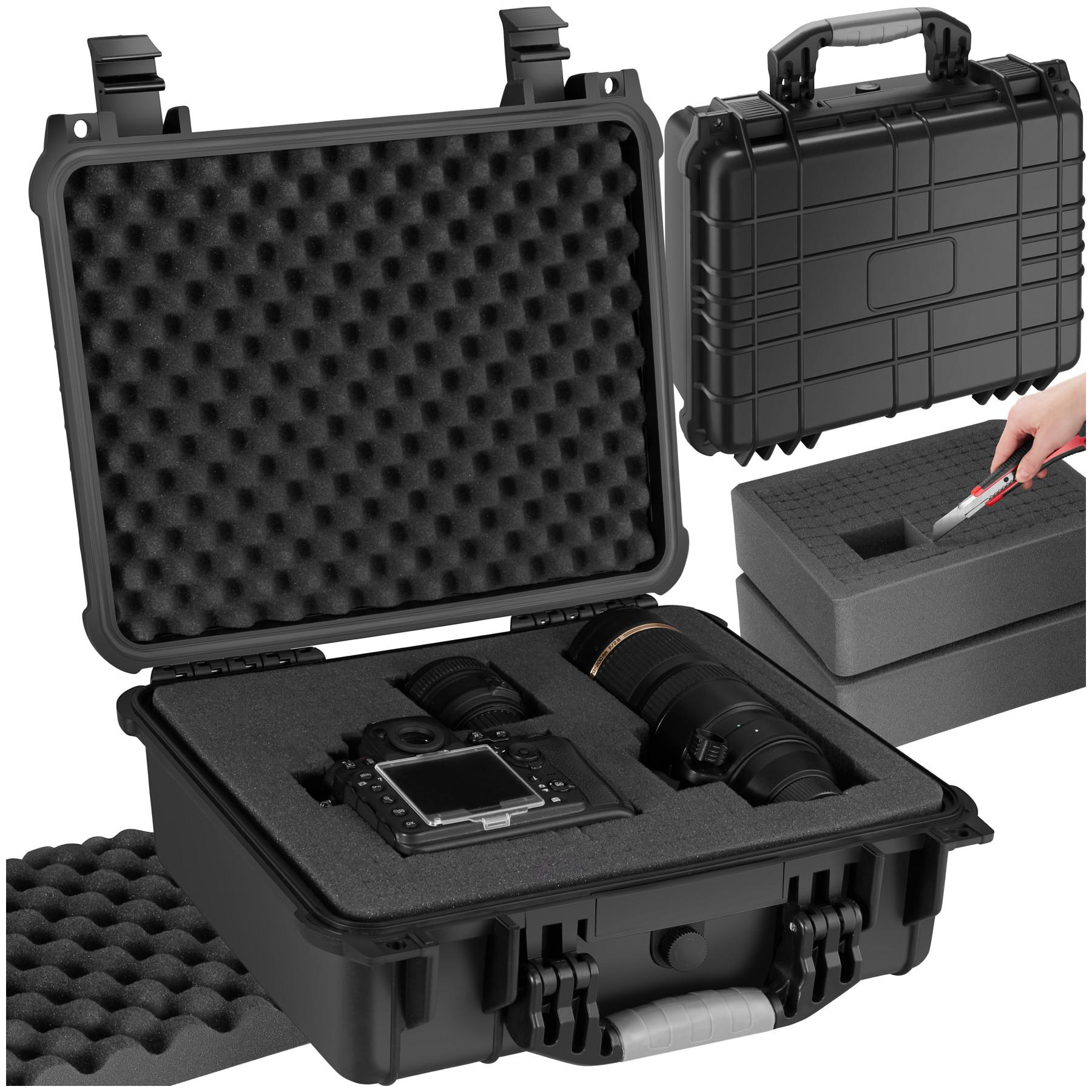 Tectake Kamerakoffer aus robuster Hartschale mit 3 Schaumstoffeinlagen Druckausgleichsventil