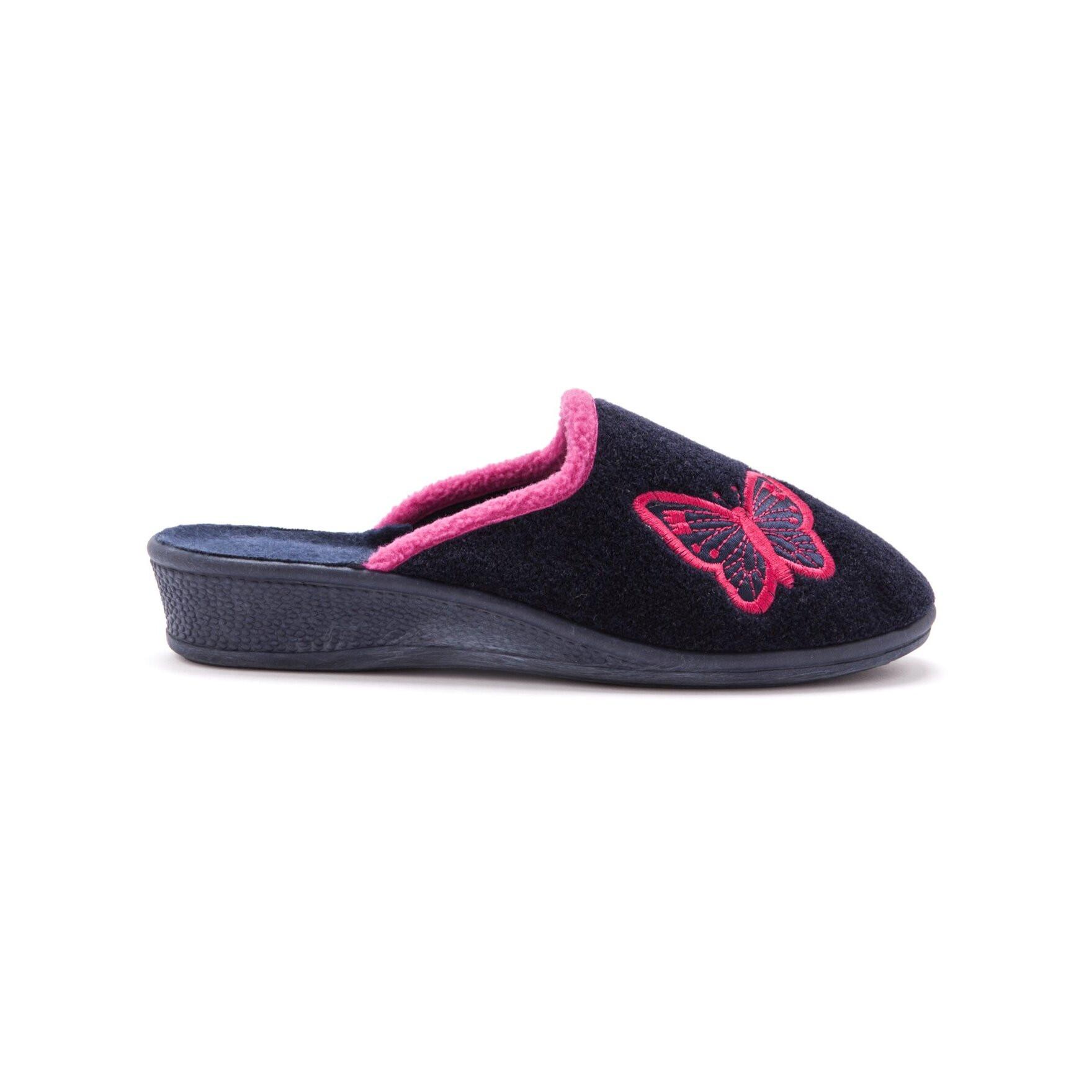 Diese sehr gemütlichen Filz-Hausschuhe sind perfekt, um sich während Ihrer Entspannungsmomente wohlzufühlen. Sie sind schön mit einer kontrastierenden Schmetterlingsstickerei verziert.
