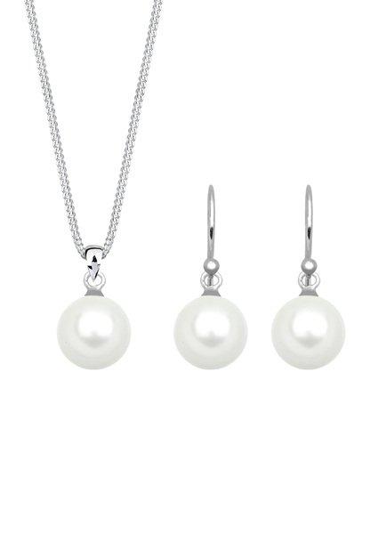 Elli, Schmuckset Muschelkernperle Klassisch Halskette Ohrringe