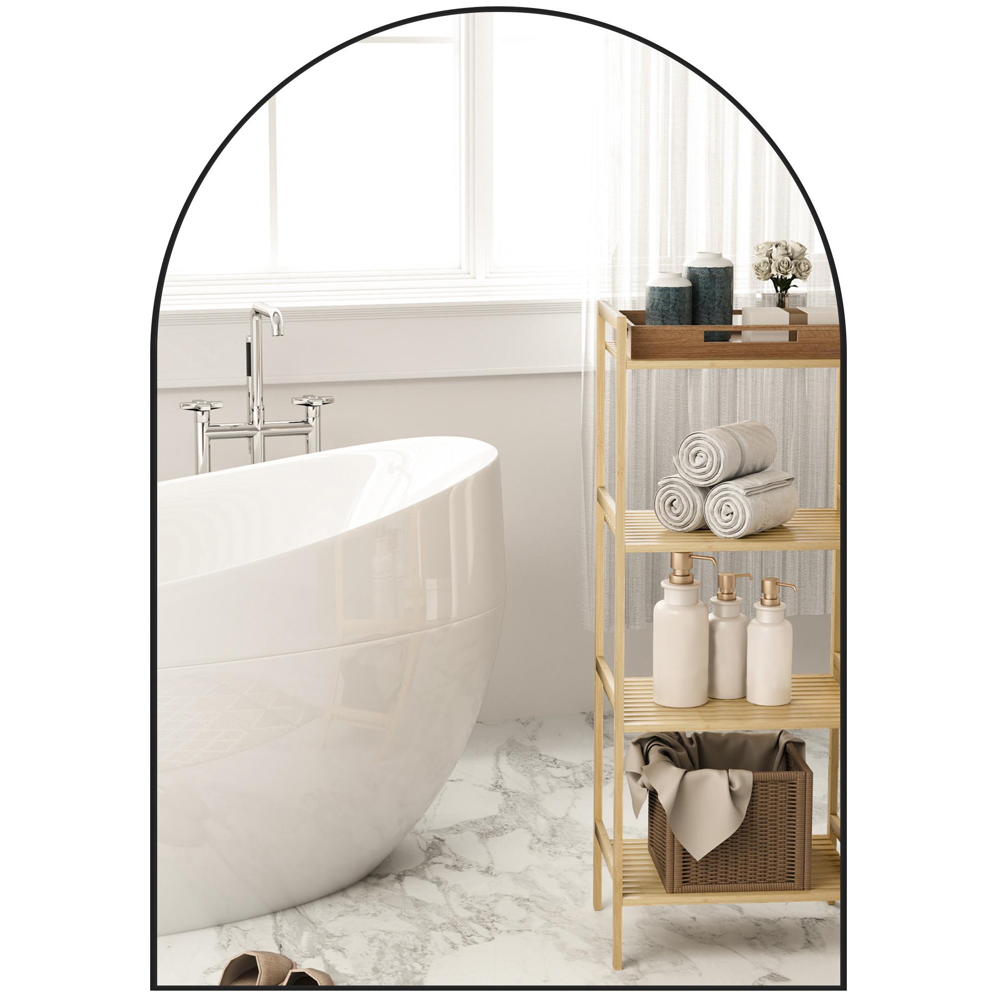 Entdecken Sie den eleganten Badezimmerspiegel von HOMCOM mit einem Bogendesign in den Maßen 50 x 70 cm, der jedem Raum eine elegante Note verleiht. Der 3 cm dicke Rahmen aus Aluminiumlegierung des Badspiegels ist rost- und wasserbeständig, ideal für feuchte Badezimmer. Zudem gewährleistet der Wandspiegel langanhaltenden Kanten-Schutz.