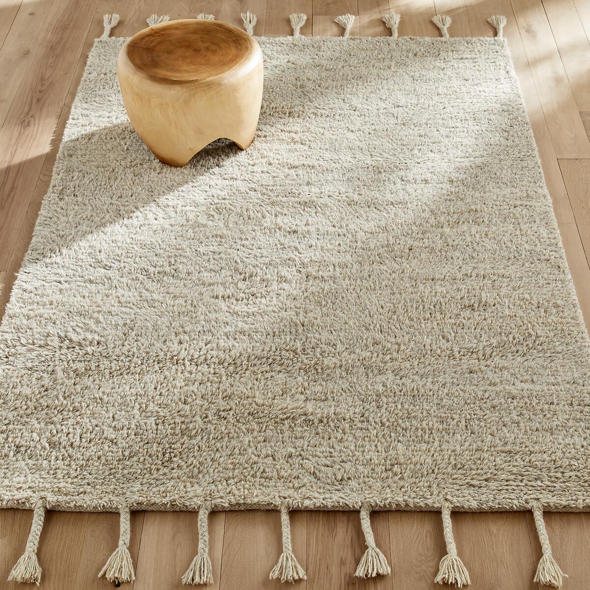 Teppich Neroli im Berberstil. Dieser handgeknüpfte melierte Teppich in natürlichen Farbtönen bringt Wärme in den Raum.