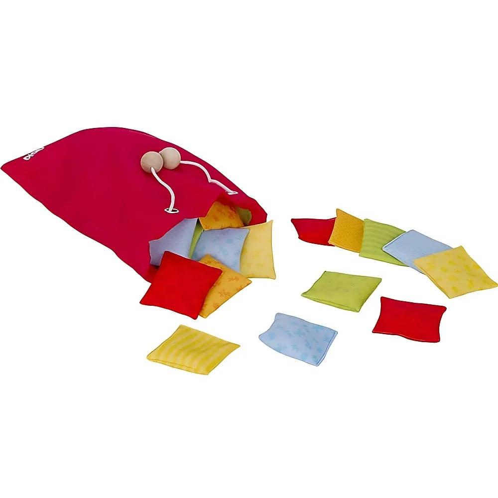 Das Spiel besteht aus 20 bunten gefüllten Kissen, die in einem Beutel verborgen sind. Die Spieler müssen durch Tasten und Fühlen passende Paare finden. Wenn Muster und Inhalt übereinstimmen, haben sie gewonnen. Ein spannendes und lehrreiches Spiel für alle Altersgruppen.