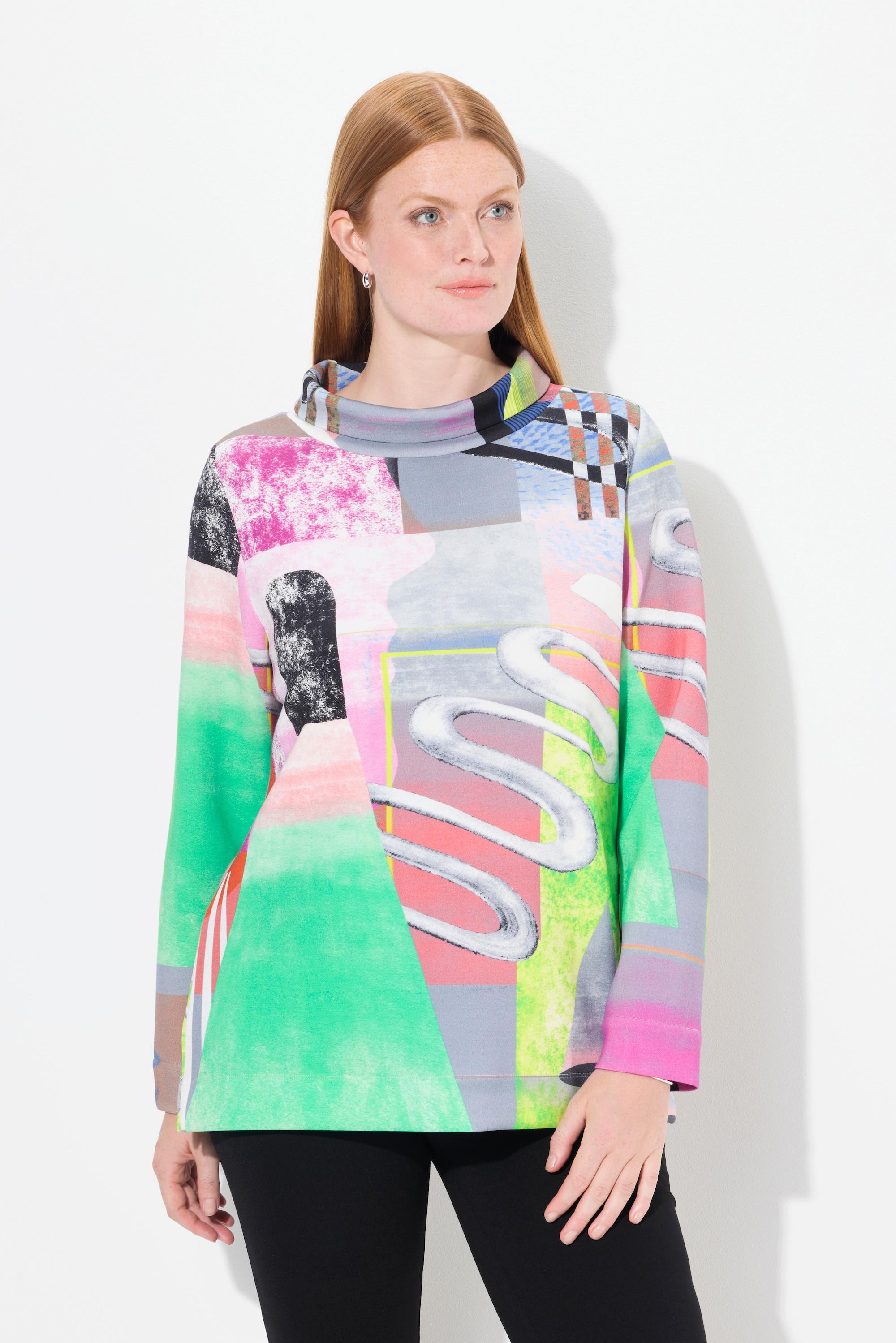 Ulla Popken Sweatshirt Patchdesign Stehkragen Langarm Modalmix