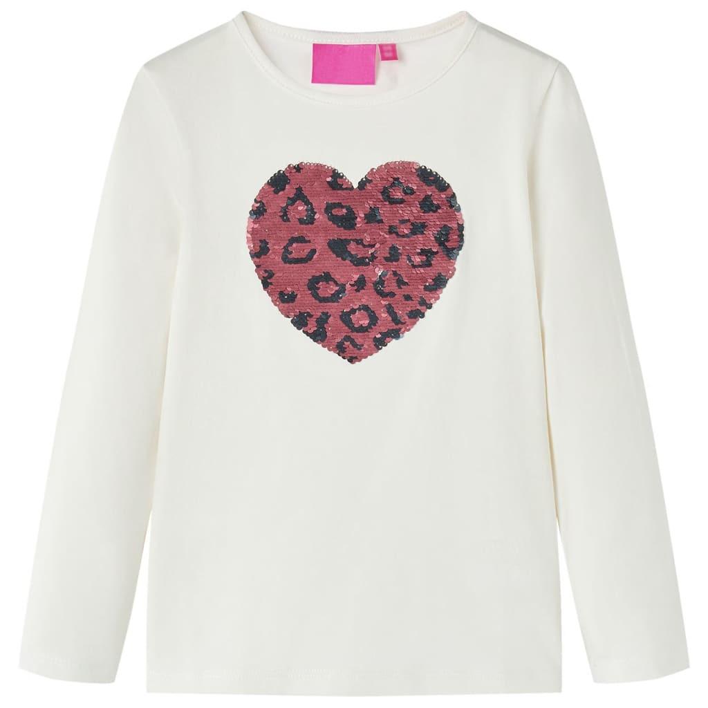 Dieses Kinder-T-Shirt hat lange Ärmel, einen Rundhalsausschnitt und eine gerade Passform. Dieses T-Shirt in Ecru ist mit einem funkelnden Herz aus Pailletten versehen. Das Langarmshirt ist aus weichem Material gefertigt, das zu 95 % aus Baumwolle und zu 5 % aus Elastan besteht und daher nicht nur äußerst komfortabel, sondern auch atmungsaktiv ist.