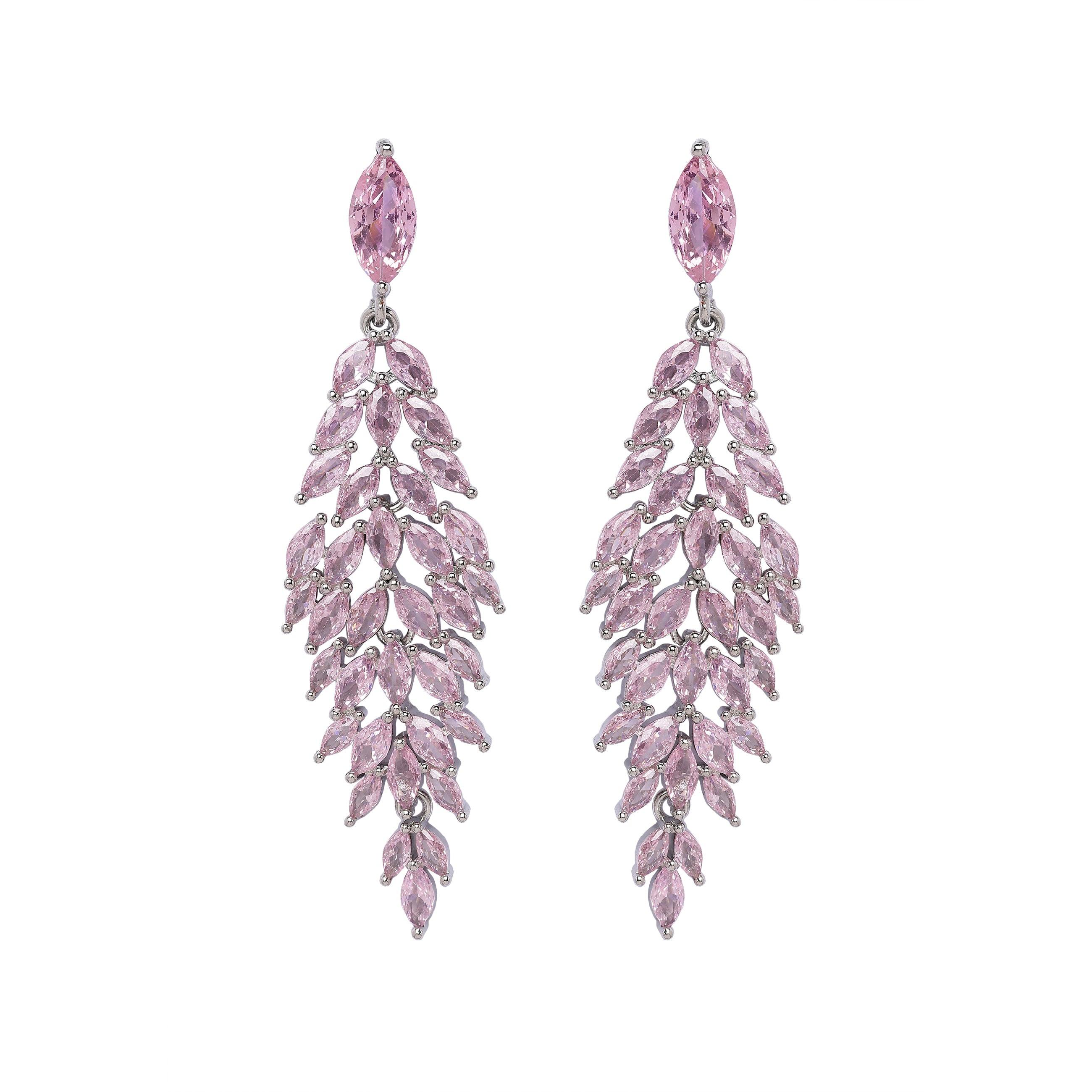 Reihen funkelnder rosa Steine erzeugen einen faszinierenden Wasserfall-Effekt, der das Licht einfängt und ein strahlendes Leuchten erzeugt. Diese Ohrringe sind ein echtes Statement-Piece, das Eleganz und Charme ausstrahlt und jedem Outfit einen Hauch von Romantik und Raffinesse verleiht. Größe: 1,6 cm x 6,0 cm | Beschichtung: Rhodium-plattiert | Verschluss: Stecker und Rückseite