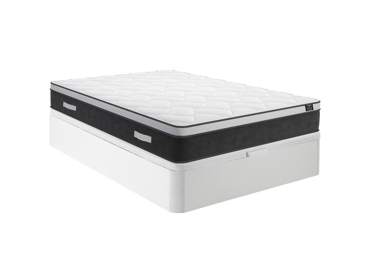 DREAMEA Set aus Bettgestell mit Bettkasten + Taschenfederkernmatratze mit Memory Schaum - 160 x 200 cm - Stärke 25 cm - Weiß - ASTRIA Art Collection von YSMÉE