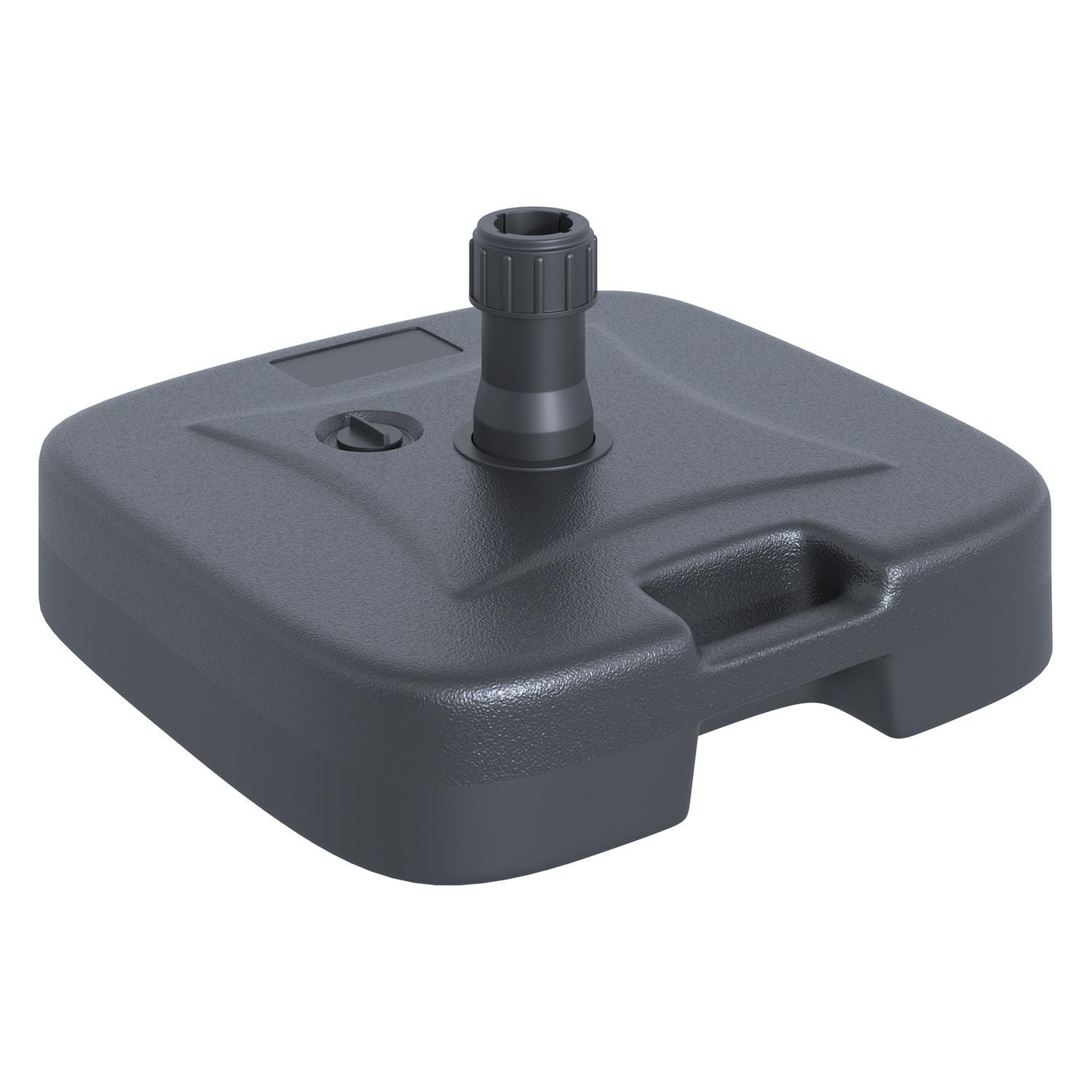 Hochwertige Verarbeitung trifft auf durchdachtes Design: Mit diesem Schirmständer müssen Sie sich keine Sorgen machen, dass ein Windstoß Ihren Sonnenschirm zum Wackeln bringt. Dieser praktische Schirmständer besteht aus strapazierfähigem HDPE-Kunststoff, der witterungsbeständig und leicht zu reinigen ist. Für mehr Stabilität können die Elemente sowohl mit Wasser als auch mit Sand gefüllt werden. Dank des integrierten Griffs lässt er sich leicht bewegen.