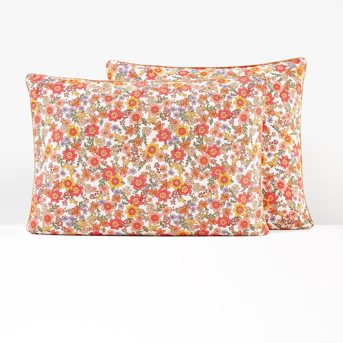Der Kissenbezug Mérédith aus vorgewaschener Baumwolle ist mit einem Feldblumenmuster versehen und wird von einer schönen goldfarbenen Paspel in Metallic-Optik geziert. Eine Kreation von La Redoute Intérieurs.