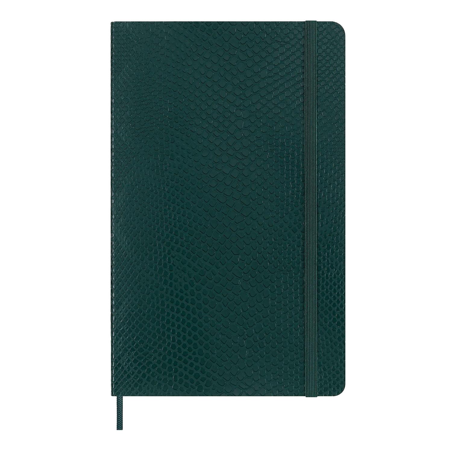 Marke: Moleskine. Design: Schlangenmuster. GSM (Gramm pro Quadratmeter): 100. Säurefrei, Elastikverschluss, Lesebändchen, Abgerundete Ecken, Liniert, Weiche Abdeckung. Nachhaltigkeit: FSC zertifiziert, Vegan. Verpackung: Geschenkschachtel, Wiederverwendbar. Länge: 13 cm. Höhe: 21 cm. Breite: 1,5 cm.