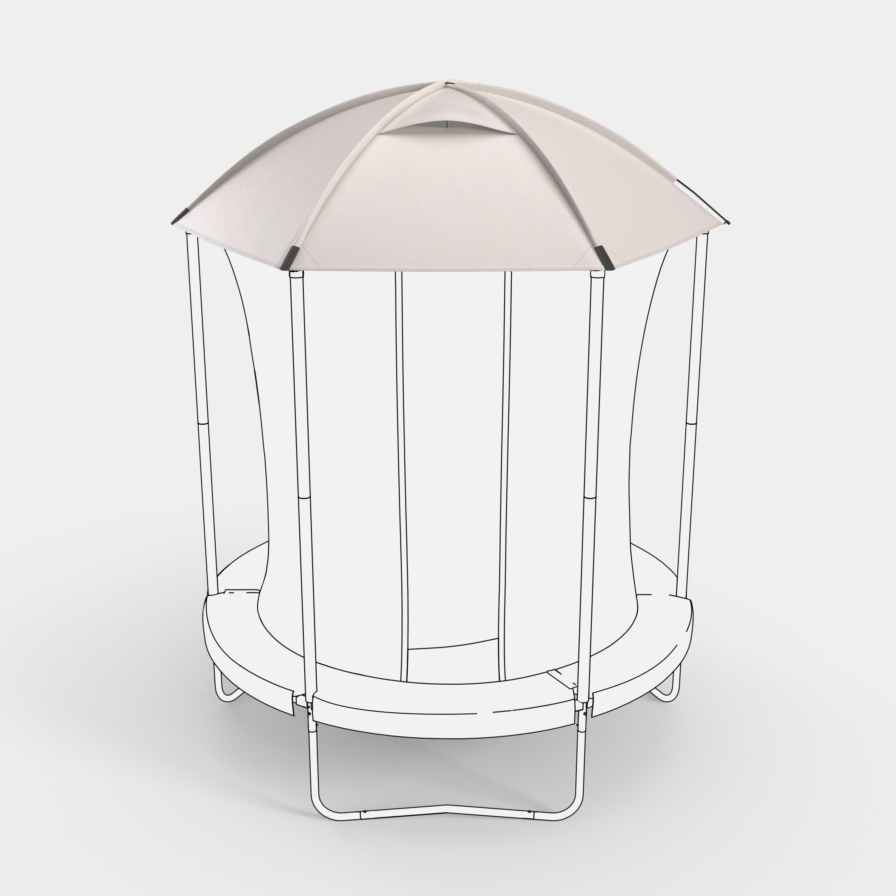 Mit dieser Trampolinabdeckung können deine Kinder bei fast jedem Wetter draussen spielen. Die Schutzkuppel fürs Trampolin schützt vor UV-Strahlung und leichtem Regen. Dank der einfachen Montage und Demontage ist die Abdeckung schnell einsatzbereit. Das Trampolin wird so im Handumdrehen zur Hütte! Die Abdeckung ist UV-beständig und wasserabweisend und wurde unter realen Bedingungen getestet. Nach Gebrauch sollte die Schutzkuppel trocken in der Tasche verstaut werden. Bei Windstärken über 50 km/h muss das Trampolin demontiert werden. Die Garantie auf Unterteile und Arbeit beträgt 2 Jahre.